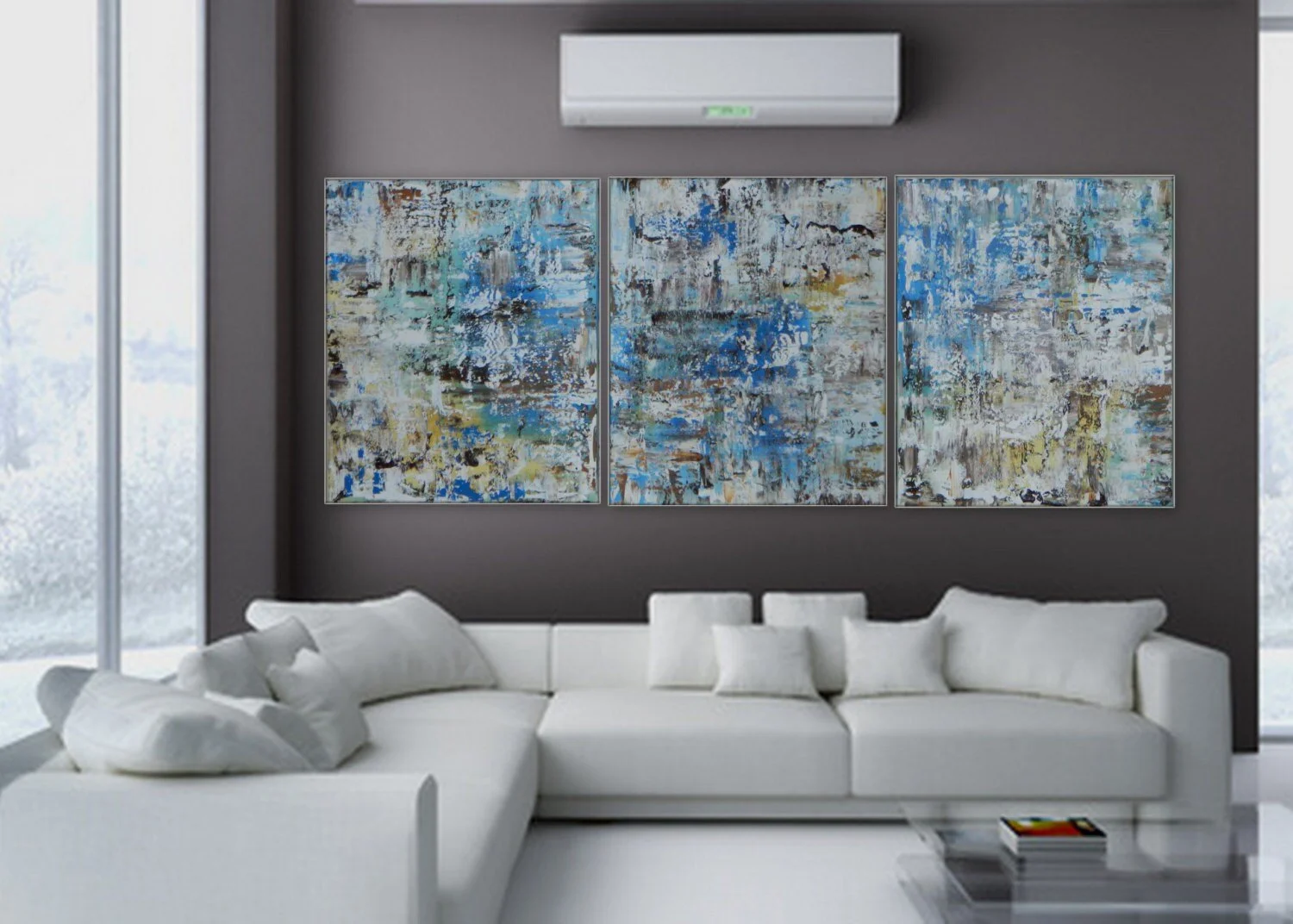 3 panel Large abstract painting by Marcy Chapman /each piece 20" x 24" total 60"x 24" Ready to hang!