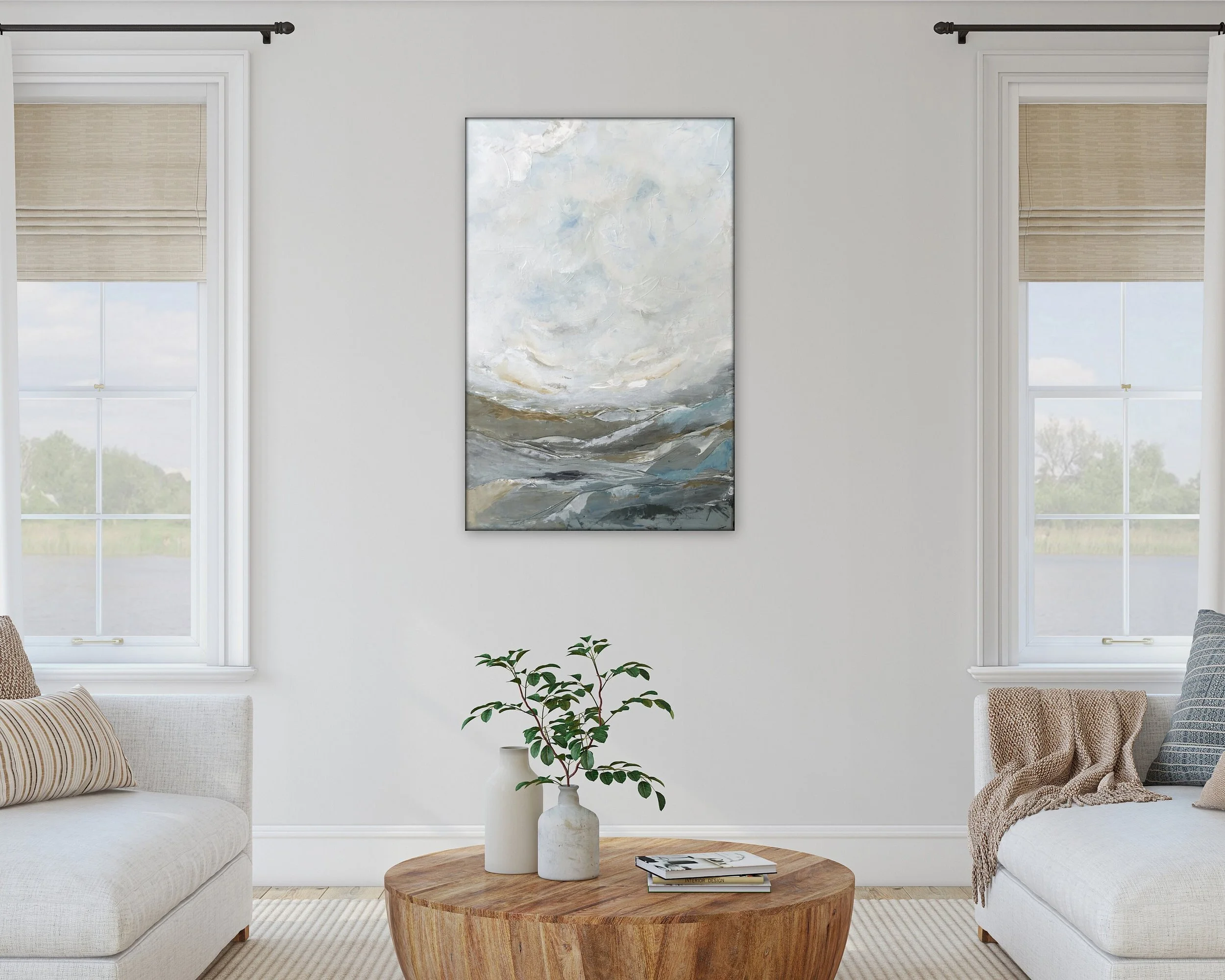 Original Artwork › 36 x 24 abstract landscape originalacrylic painting by Marcy Chapman, blue and gray toned pretty farmhouse, modern contemporary minimal art Image 1 of 5 Image 2 of 5 Image 3 of 5 Image 4 of 5 Image 5 of 5 36 x 24 abstract landscape originalacrylic painting by Marcy Chapman, blue and gray toned pretty farmhouse, modern contemporary minimal art $265.00 sold out This is an ORIGINAL abstract painting, ready to hang on gallery wrapped, 3/4 inch deep frame.This painting has a very soft calming feel to it. I love the deep lines ( shown in closeup review photos).Gallery wrapped wood frame Acrylic paint36 x 24 x .75 Yo can hang this painting easily on a nail or screw or you can add a pretty float frame to compliment it and add a little more personal touch.This painting will be shipped in a sturdy box with protective bubble wrap.Please contact me if you would like something similar but in a different size.Thank you so much for taking the time to view my painting. I am happy to answer any questions you may have! Get notified by email when this product is in stock. Sold Out Added! This is an ORIGINAL abstract painting, ready to hang on gallery wrapped, 3/4 inch deep frame.This painting has a very soft calming feel to it. I love the deep lines ( shown in closeup review photos).Gallery wrapped wood frame Acrylic paint36 x 24 x .75 Yo can hang this painting easily on a nail or screw or you can add a pretty float frame to compliment it and add a little more personal touch.This painting will be shipped in a sturdy box with protective bubble wrap.Please contact me if you would like something similar but in a different size.Thank you so much for taking the time to view my painting. I am happy to answer any questions you may have!