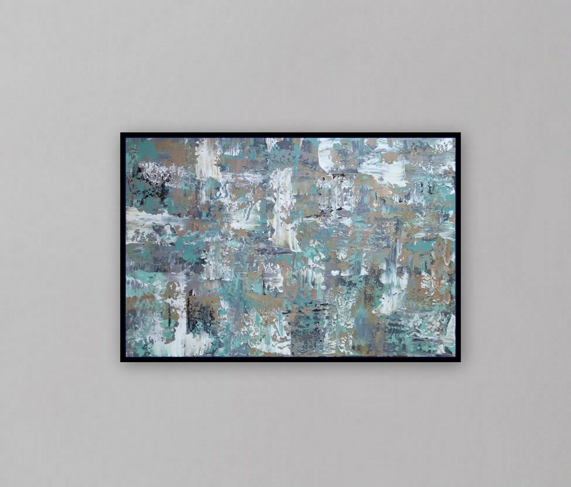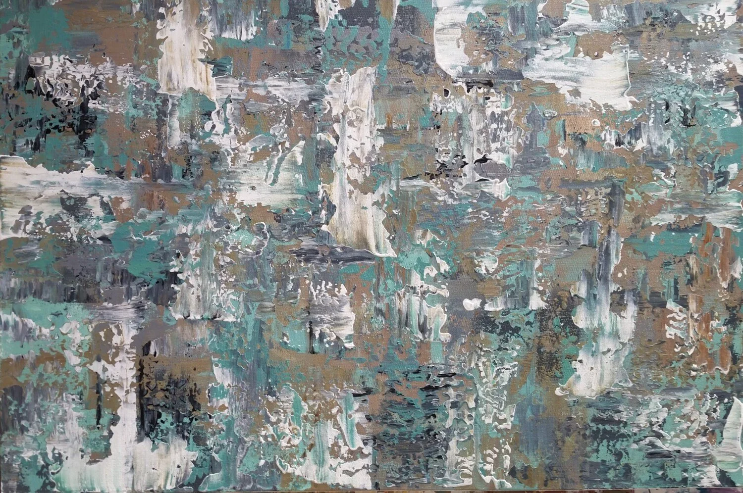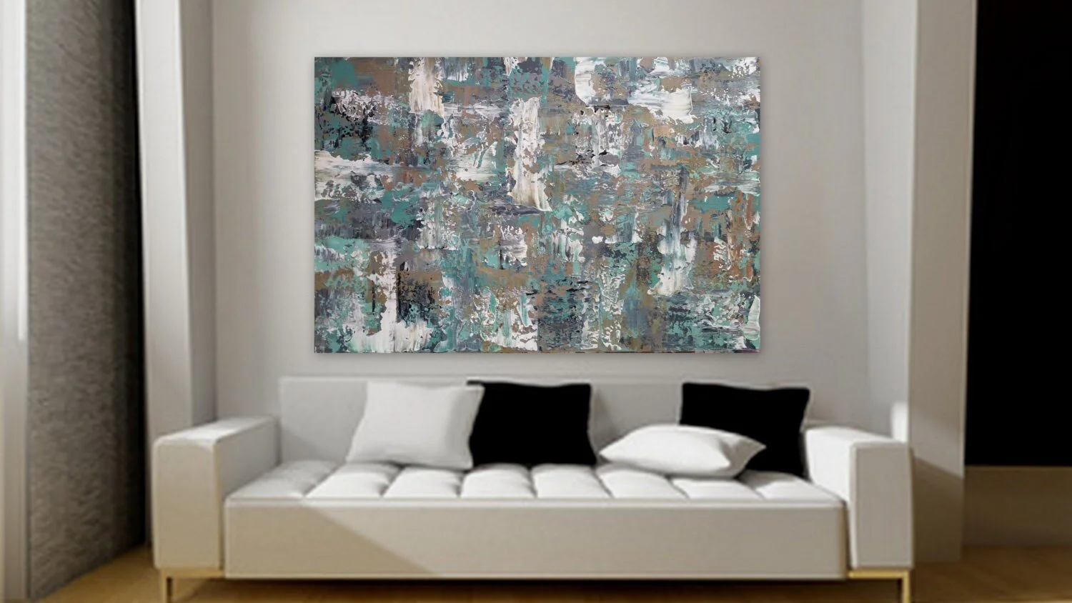 36 x 24 "In the Calm" Large turquoise gray blue brown tan white original abstract modern painting gallery wrapped large abstract painting