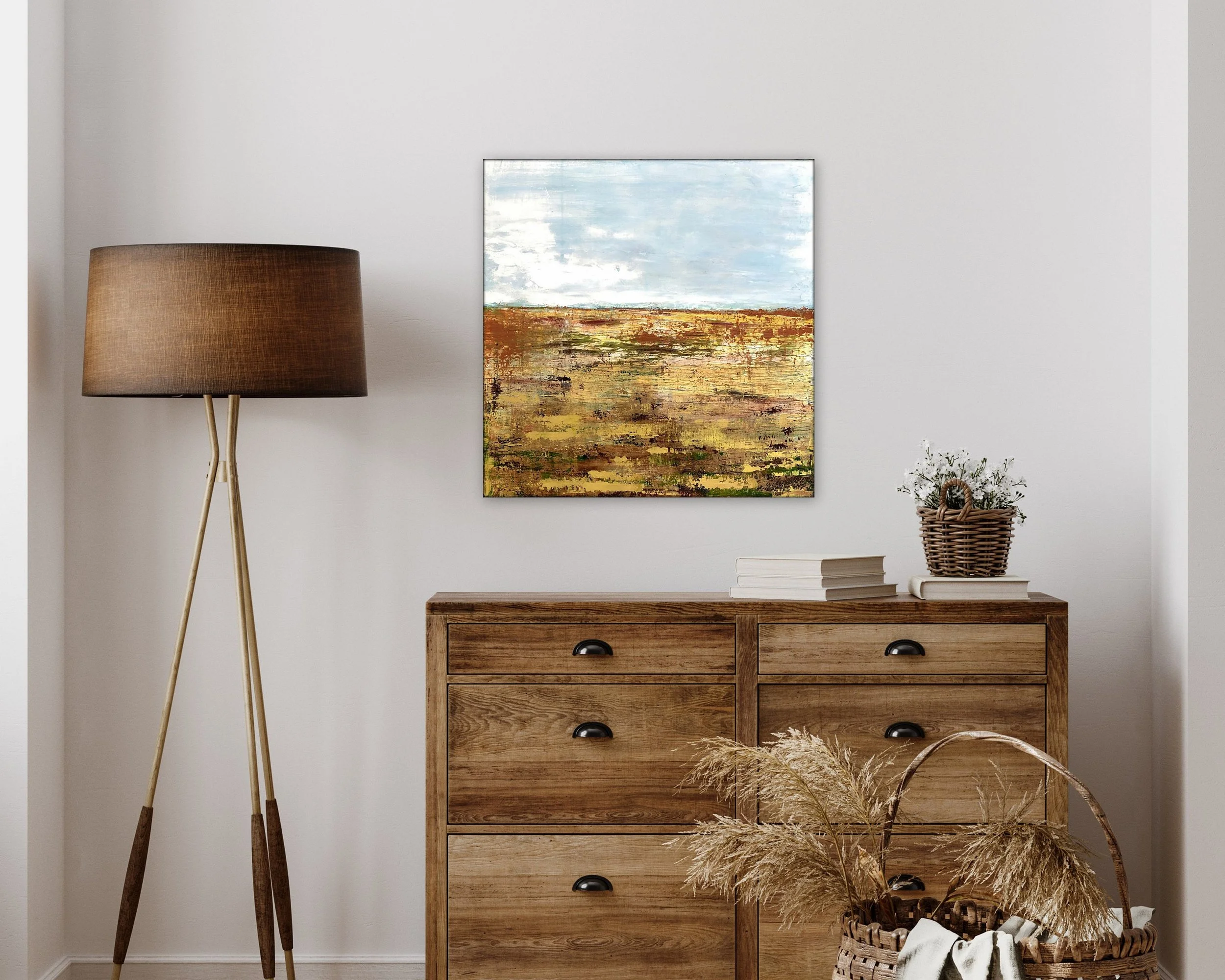Original Artwork › Abstract Landscape Painting, Orange Blue Rust Colors, Modern Farmhouse Style Image 1 of 9 Image 2 of 9 Image 3 of 9 Image 4 of 9 Image 5 of 9 Image 6 of 9 Image 7 of 9 Image 8 of 9 Image 9 of 9 Abstract Landscape Painting, Orange Blue Rust Colors, Modern Farmhouse Style $50.00 This is an original, abstract, landscape, painting by Marcy Chapman.SquareSize: 24" x 24" x 1.5"unstretched canvas nly, will need frameEdges are painted a bright white to make it pop and give it a very professional high end look.This is a high quality, acrylic painting. Varnished with a higher cost satin varnish so its in between gloss and matte.Please contact me with any questions.Custom orders available.Please check out more of my art in my shop for huge art and more landscapes and florals. Get notified by email when this product is in stock. Add To Cart Added! This is an original, abstract, landscape, painting by Marcy Chapman.SquareSize: 24" x 24" x 1.5"unstretched canvas nly, will need frameEdges are painted a bright white to make it pop and give it a very professional high end look.This is a high quality, acrylic painting. Varnished with a higher cost satin varnish so its in between gloss and matte.Please contact me with any questions.Custom orders available.Please check out more of my art in my shop for huge art and more landscapes and florals.