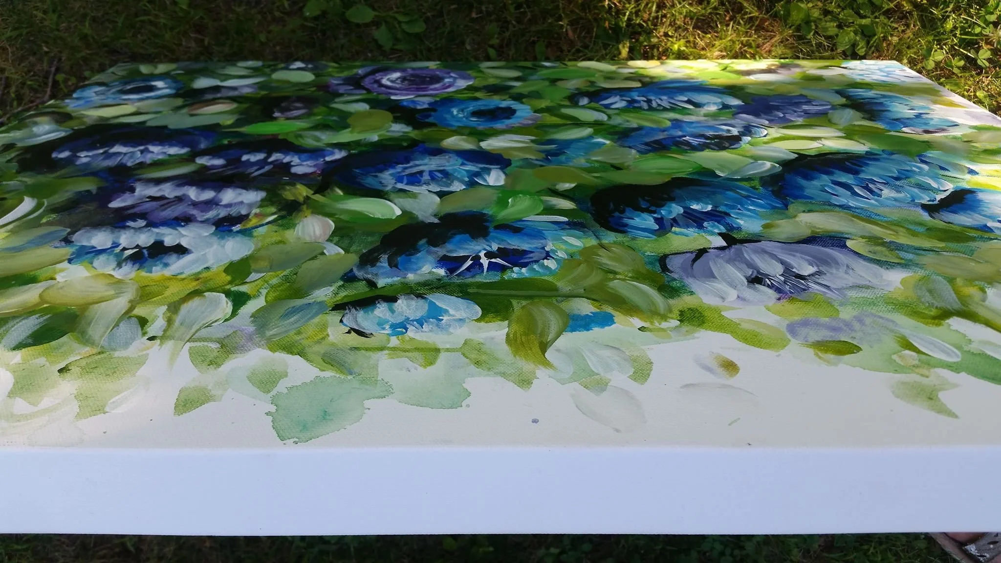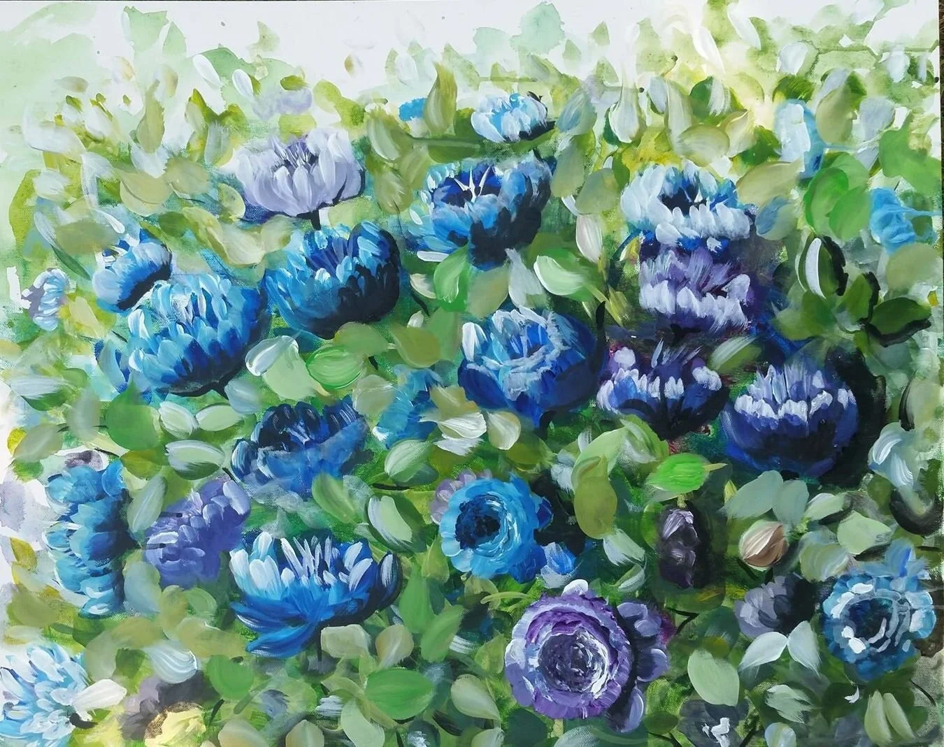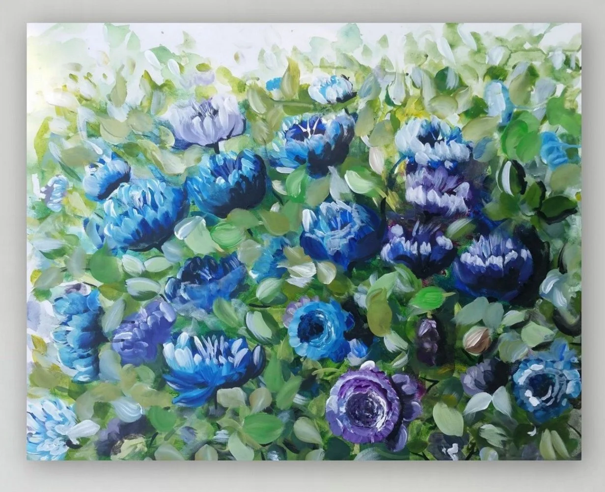 Original Artwork › Blue and Purple flower painting. Original acrylic painting by Marcy Chapman REady to ship and ready to hang. wall art home decor semireal Image 1 of 3 Image 2 of 3 Image 3 of 3 Blue and Purple flower painting. Original acrylic painting by Marcy Chapman REady to ship and ready to hang. wall art home decor semireal $199.00 sold out Thank you so much for taking the time to view my original acrylic painting.This painting measures 24 x 30 inches. She is gallery wrapped and ready to adorn your wall. "Pretty in Blue" is ready to ship, varnished and will be ready to hang when she arrives.The colors are so bright and deep in the painting and the textures just pull you in. This painting will look great in an room.Free shipping to USA! Get notified by email when this product is in stock. Sold Out Added! Thank you so much for taking the time to view my original acrylic painting.This painting measures 24 x 30 inches. She is gallery wrapped and ready to adorn your wall. "Pretty in Blue" is ready to ship, varnished and will be ready to hang when she arrives.The colors are so bright and deep in the painting and the textures just pull you in. This painting will look great in an room.Free shipping to USA!