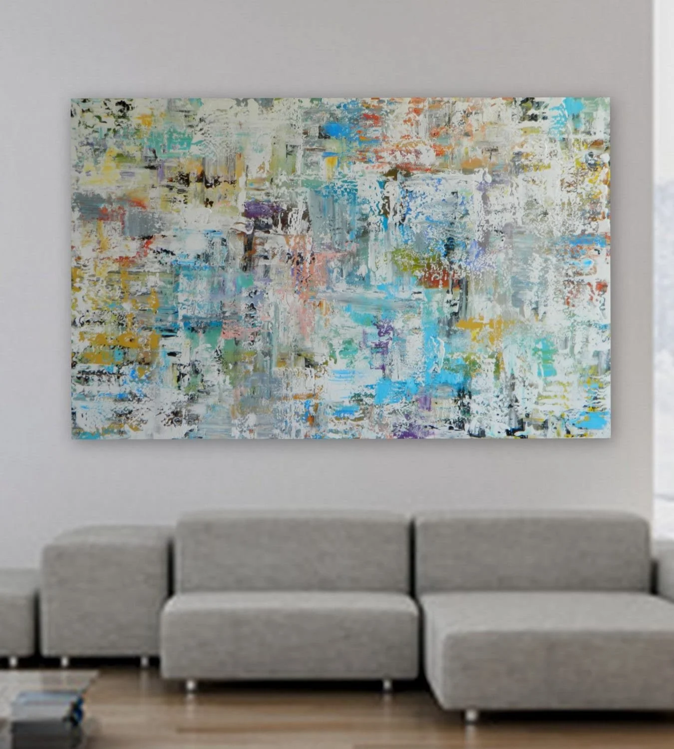 Original Artwork › Custom Listing RESERVED for Lucia Image 1 of 2 Image 2 of 2 Custom Listing RESERVED for Lucia $600.00 sold out 40" x 63" Custom order painting with blue yellow brown red orange yellow white black3 inches around painting painted white for ability to gallery wrap.Shipped UNstretched rolled canvas Original including Certificate of Authenticity, stamped and signed by the artist Marcy Chapman. Get notified by email when this product is in stock. Sold Out Added! 40" x 63" Custom order painting with blue yellow brown red orange yellow white black3 inches around painting painted white for ability to gallery wrap.Shipped UNstretched rolled canvas Original including Certificate of Authenticity, stamped and signed by the artist Marcy Chapman.