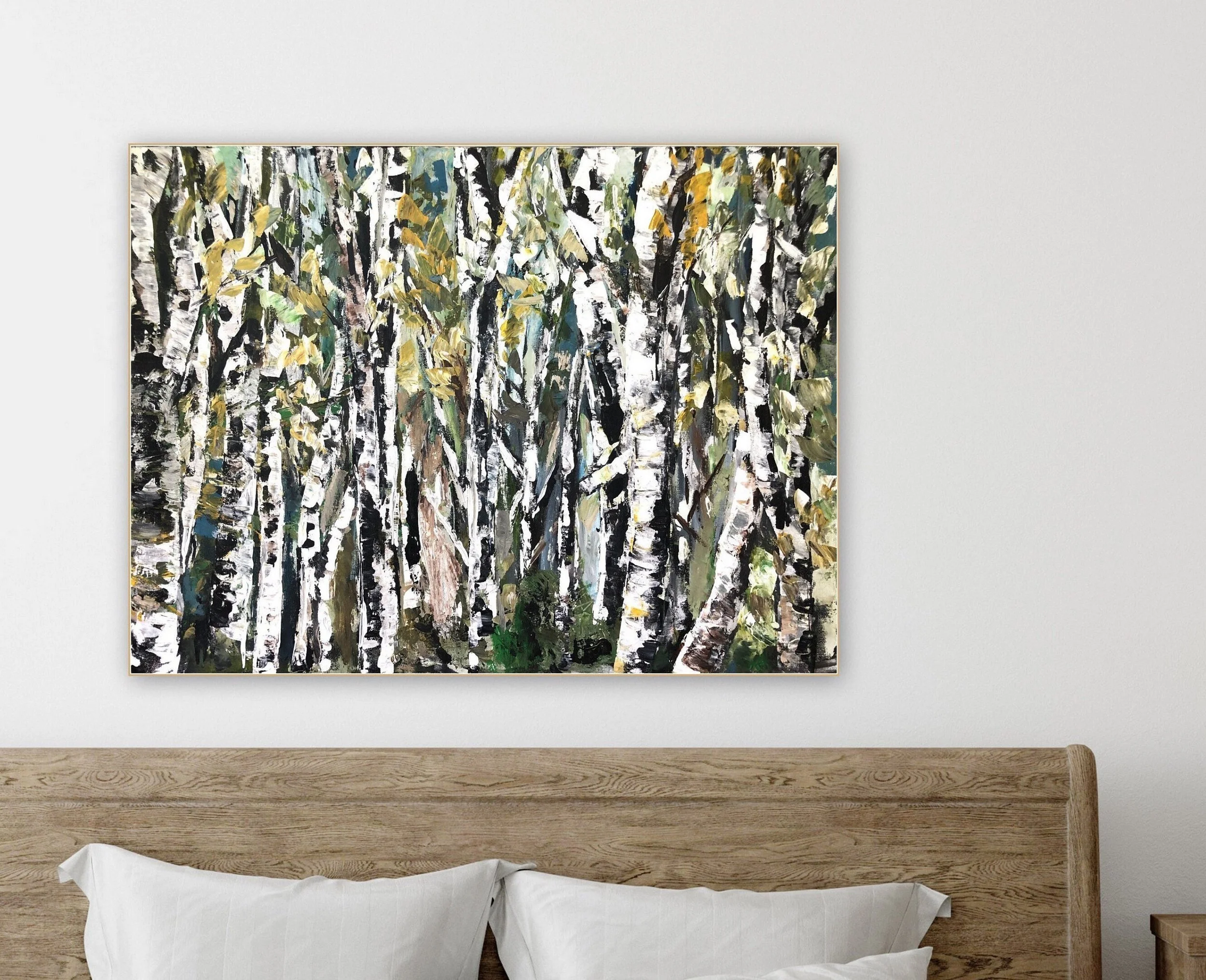 CUSTOM ORDER birch tree abstarct painting, pretty farmhouse tree wall art green white wall art marcy chapman original contemporary