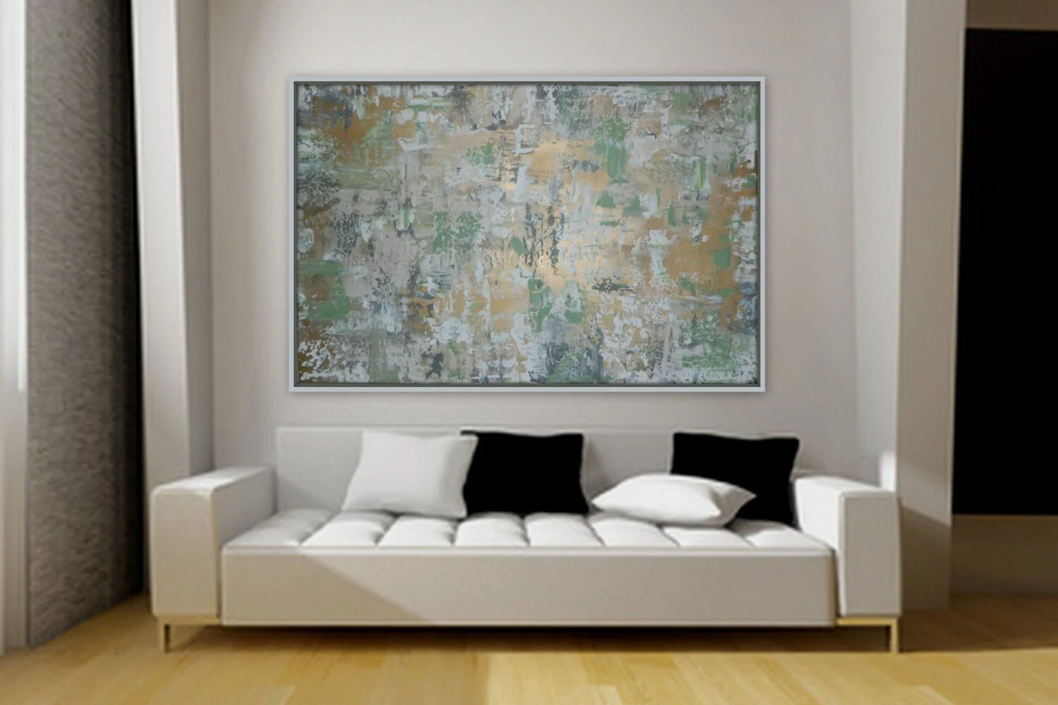 Huge, Large Original Abstract Painting modern gold gray sage green wall art extra large enormous any size by Marcy chapman bol'shaya kartina