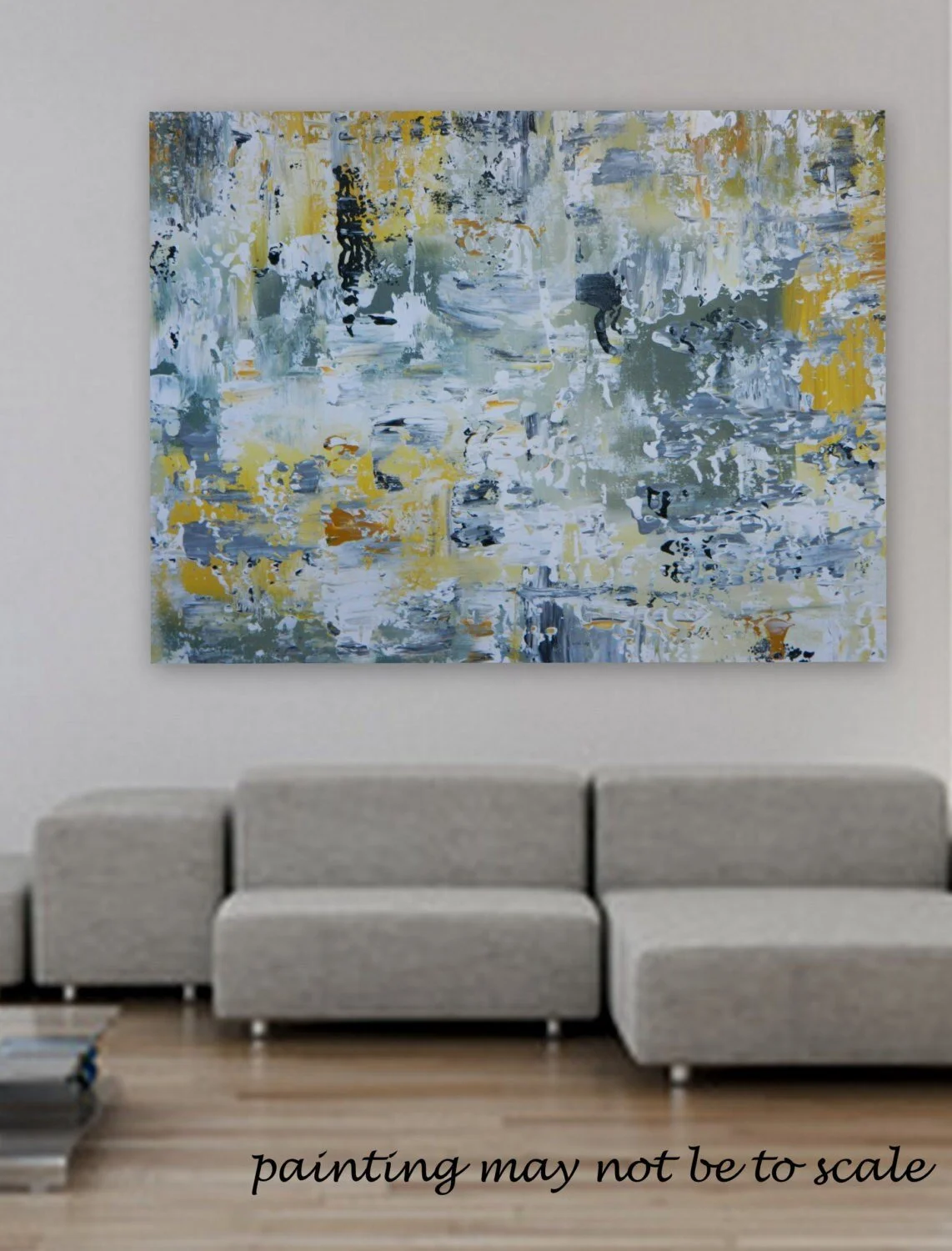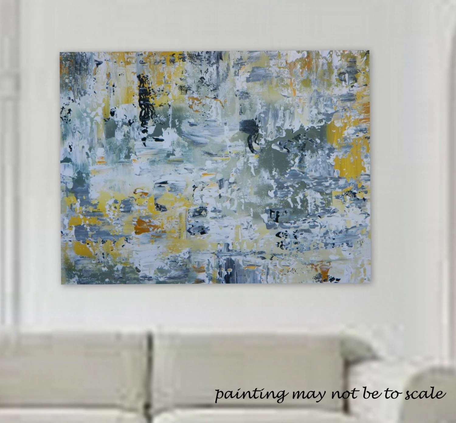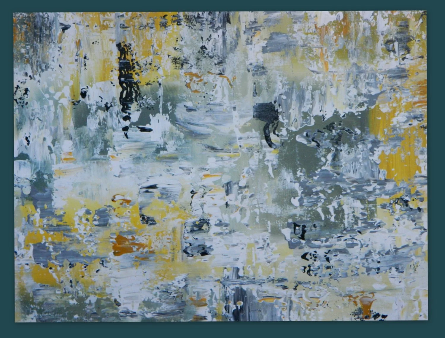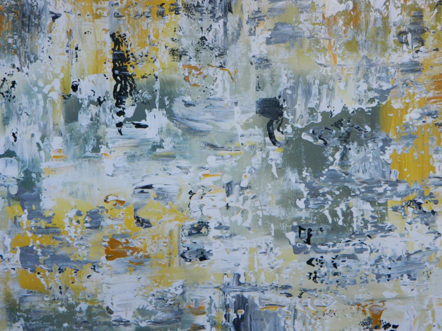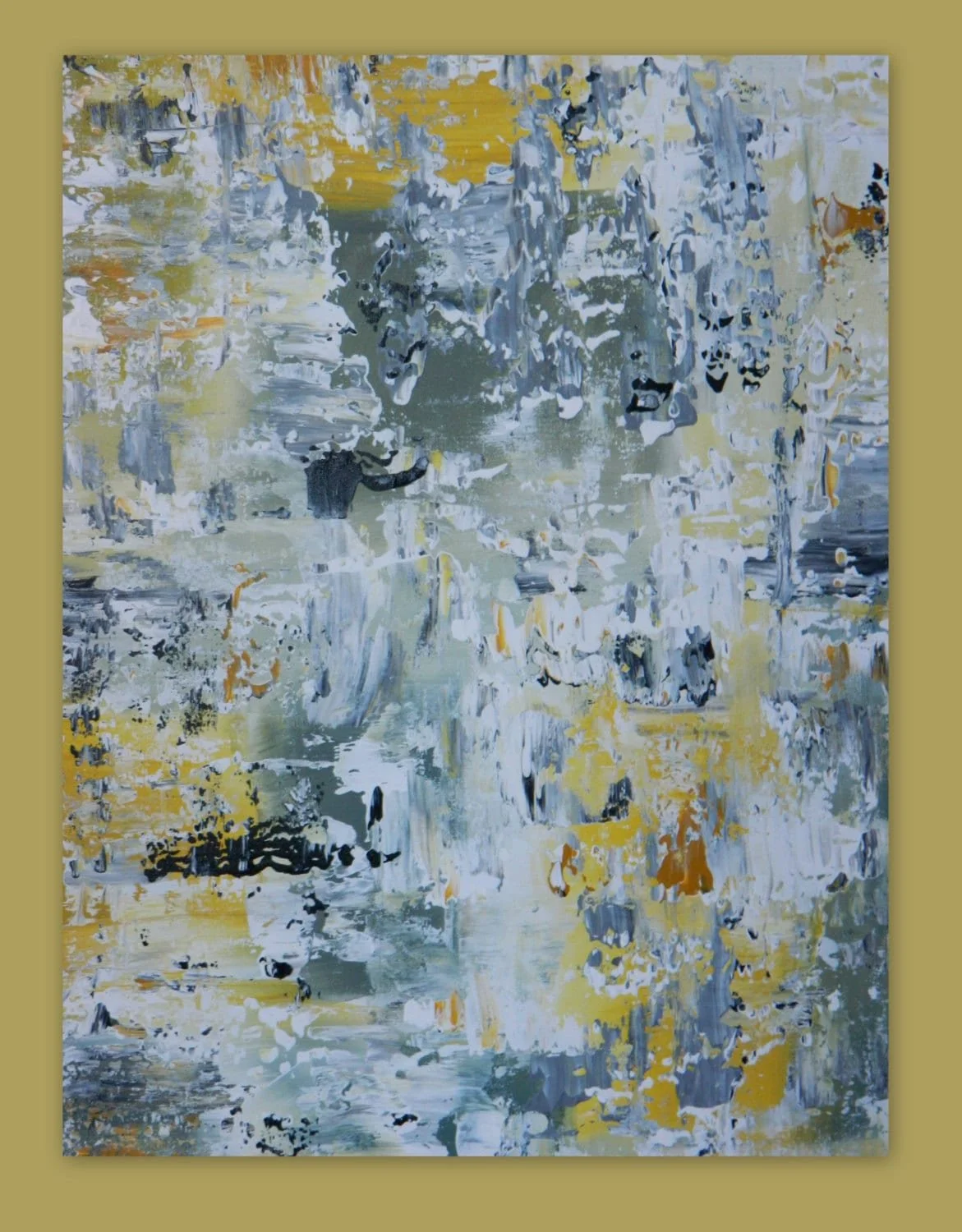 HUGE Large original painting by Marcy Chapman 30" x 40" gray, yellow, white and black Reday to hang