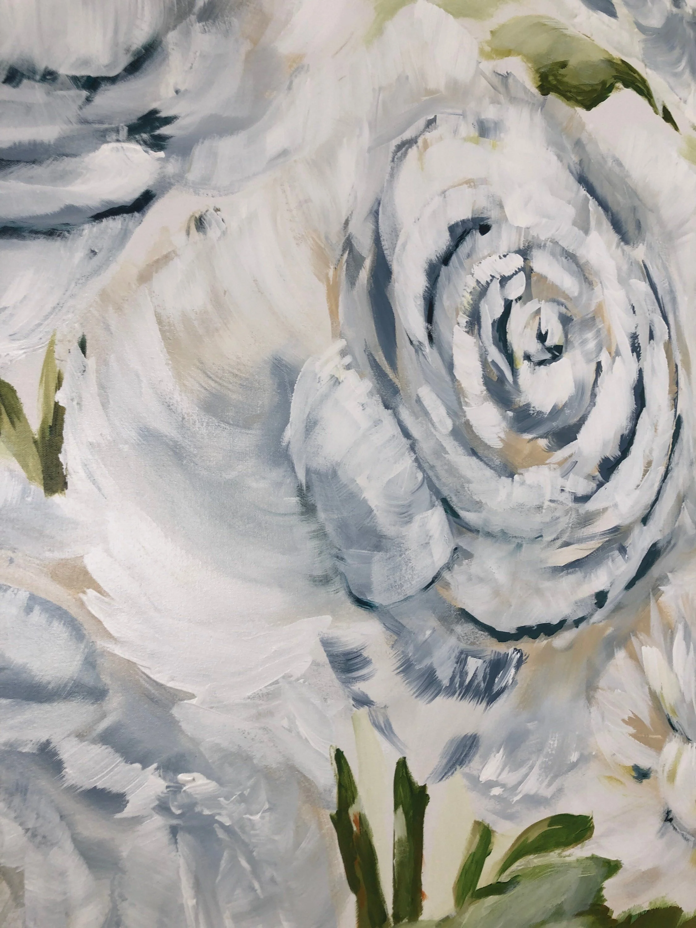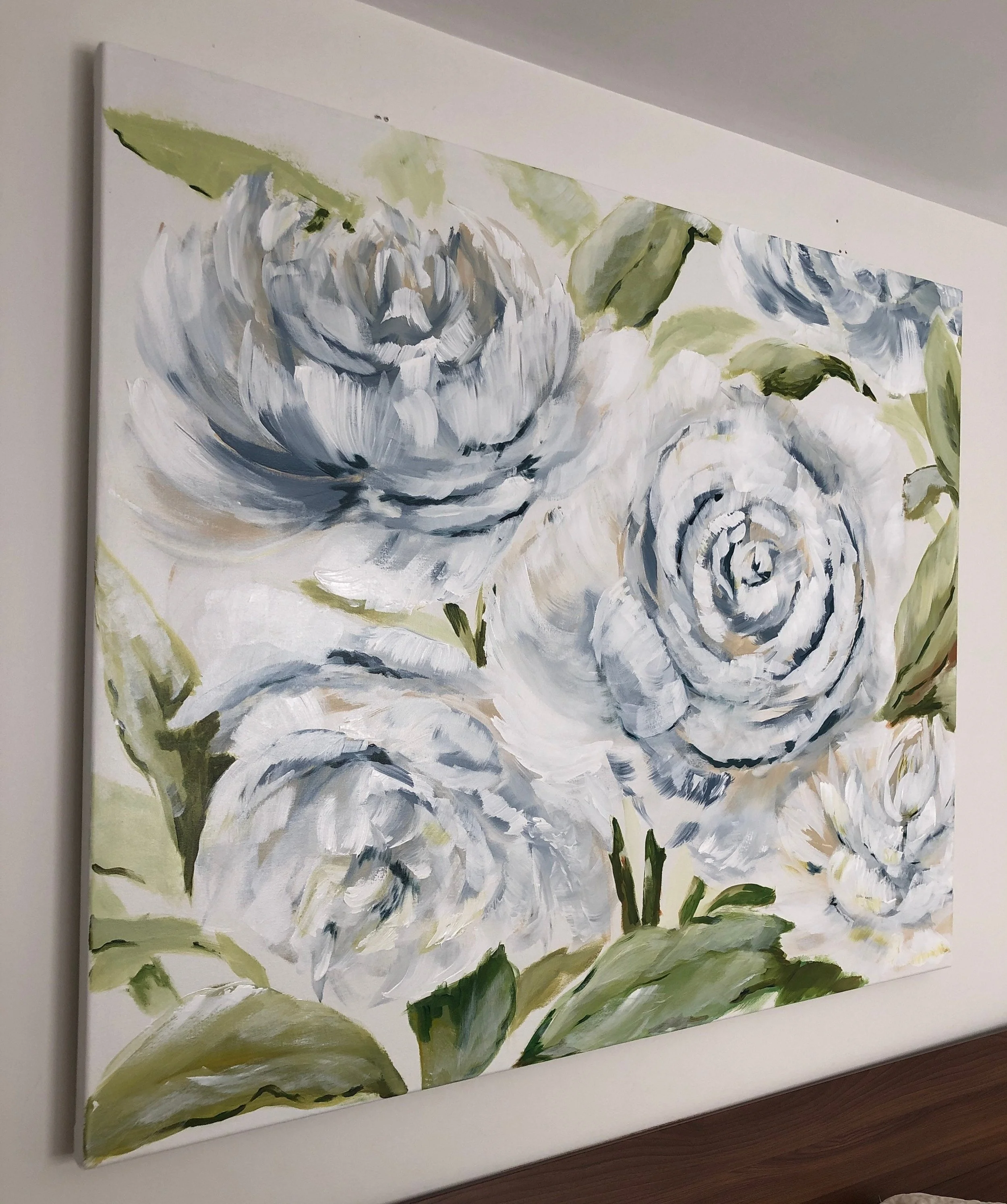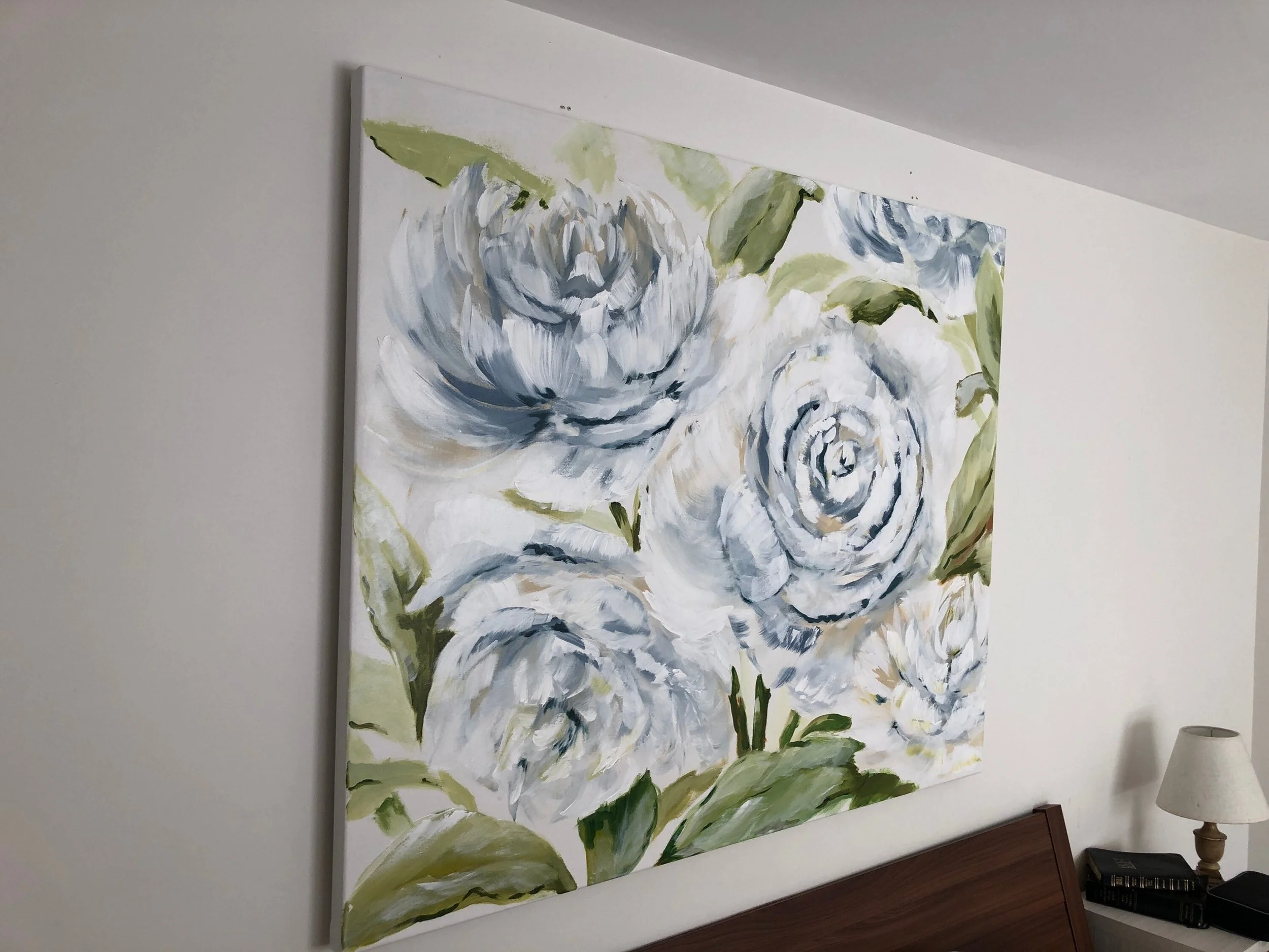 This painting is very light in color, bringing a very elegant, petty and relaxing feel to the room.