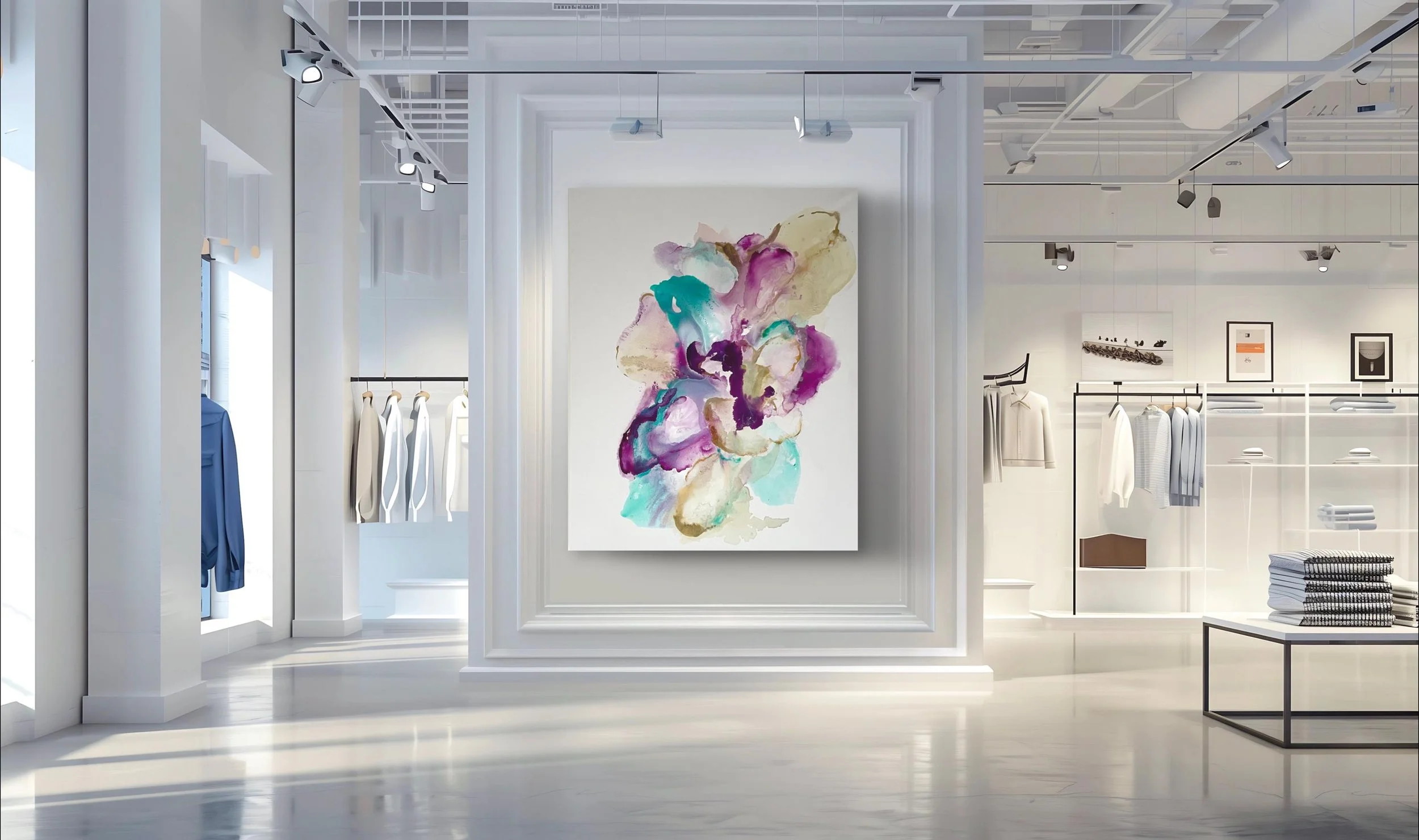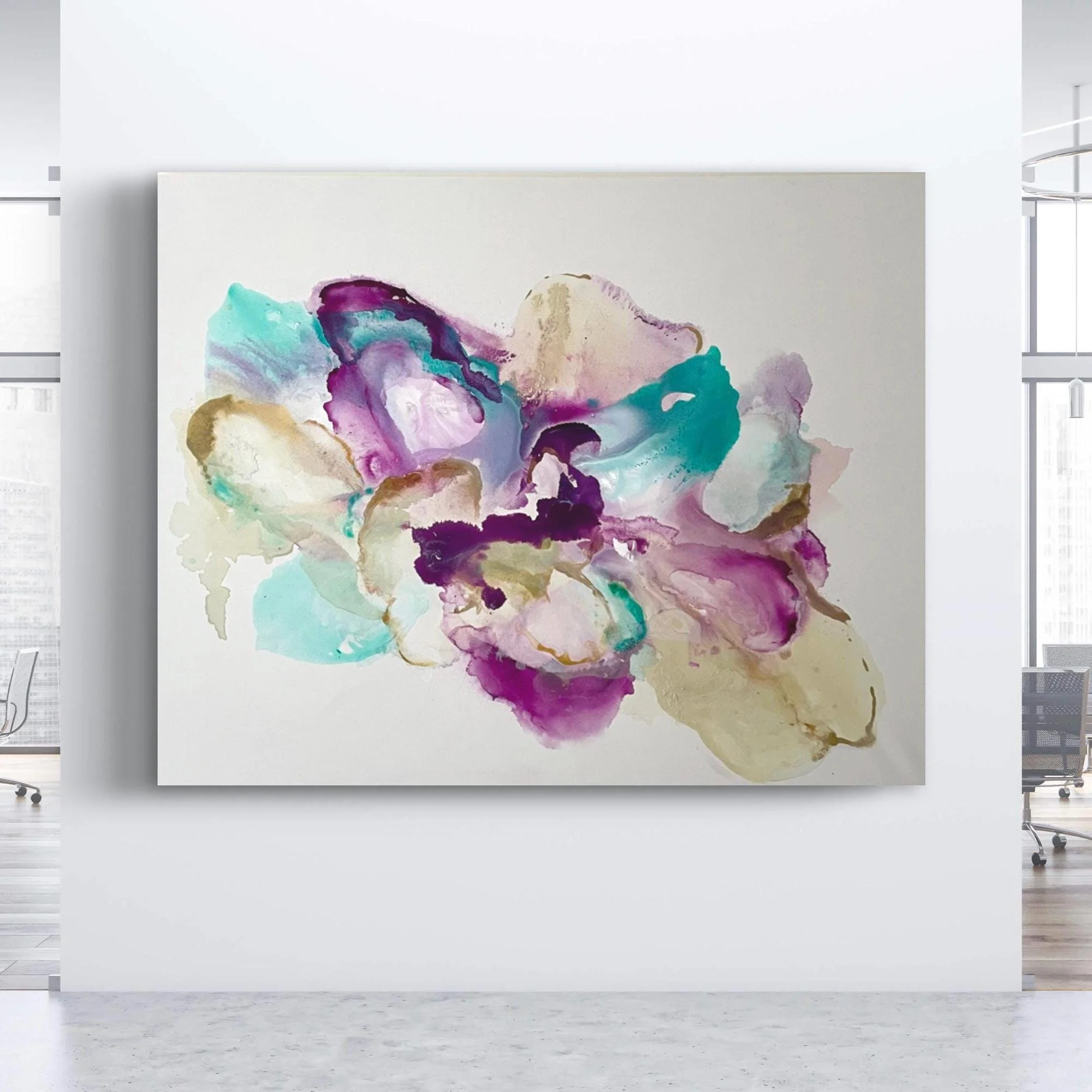 Large Abstract Fluid Painting, Modern Wall Art (45x55 inch)