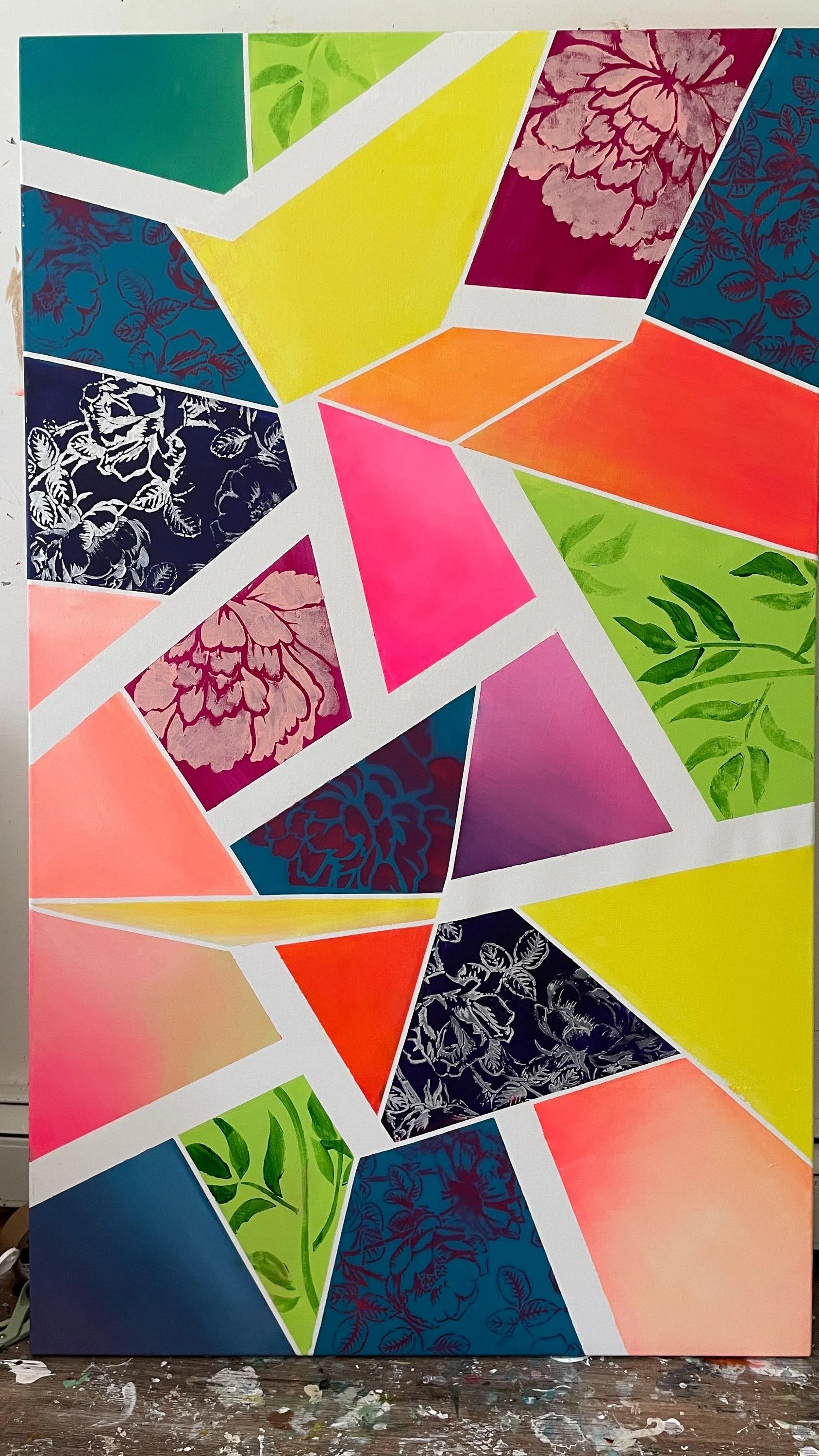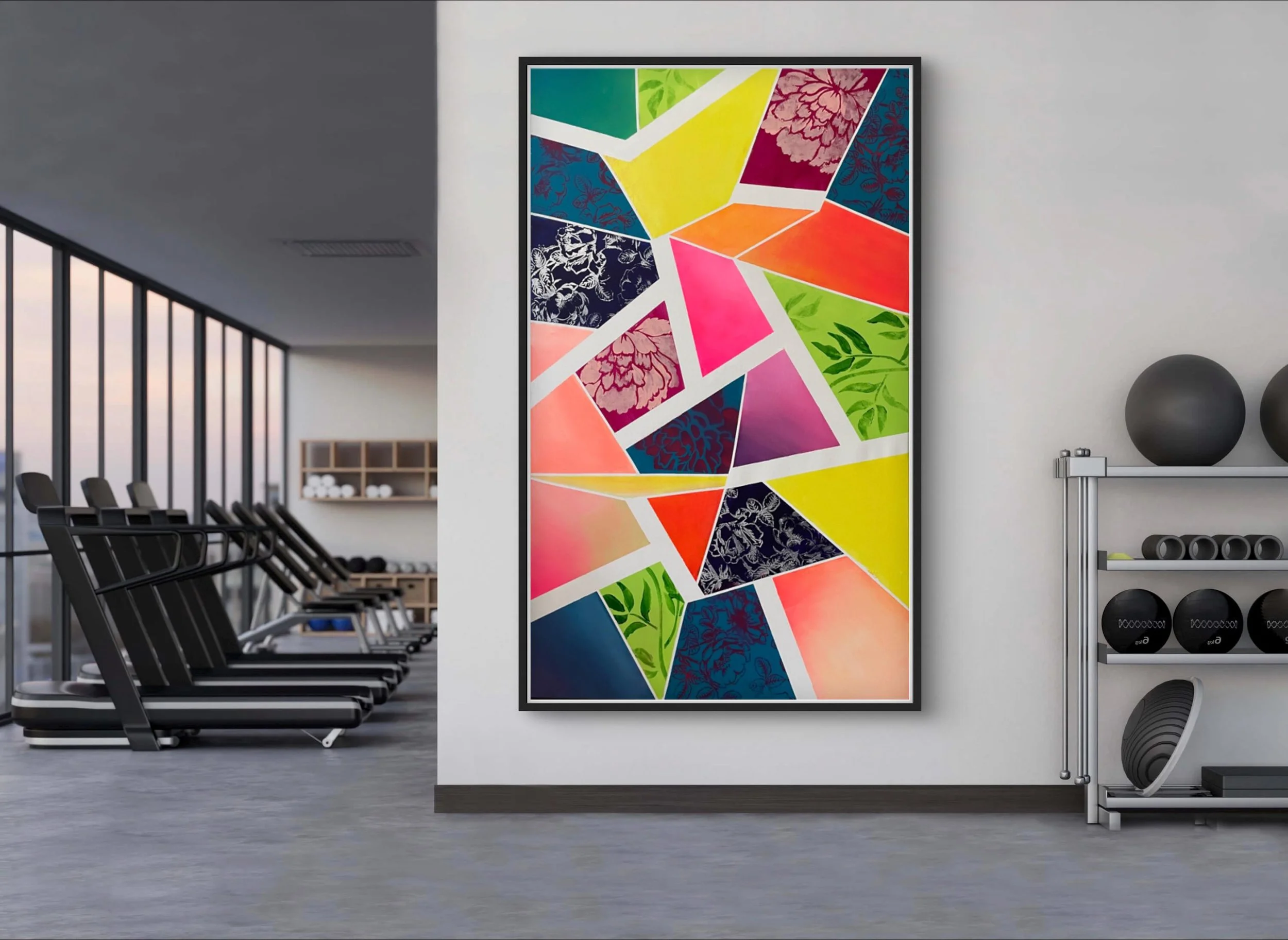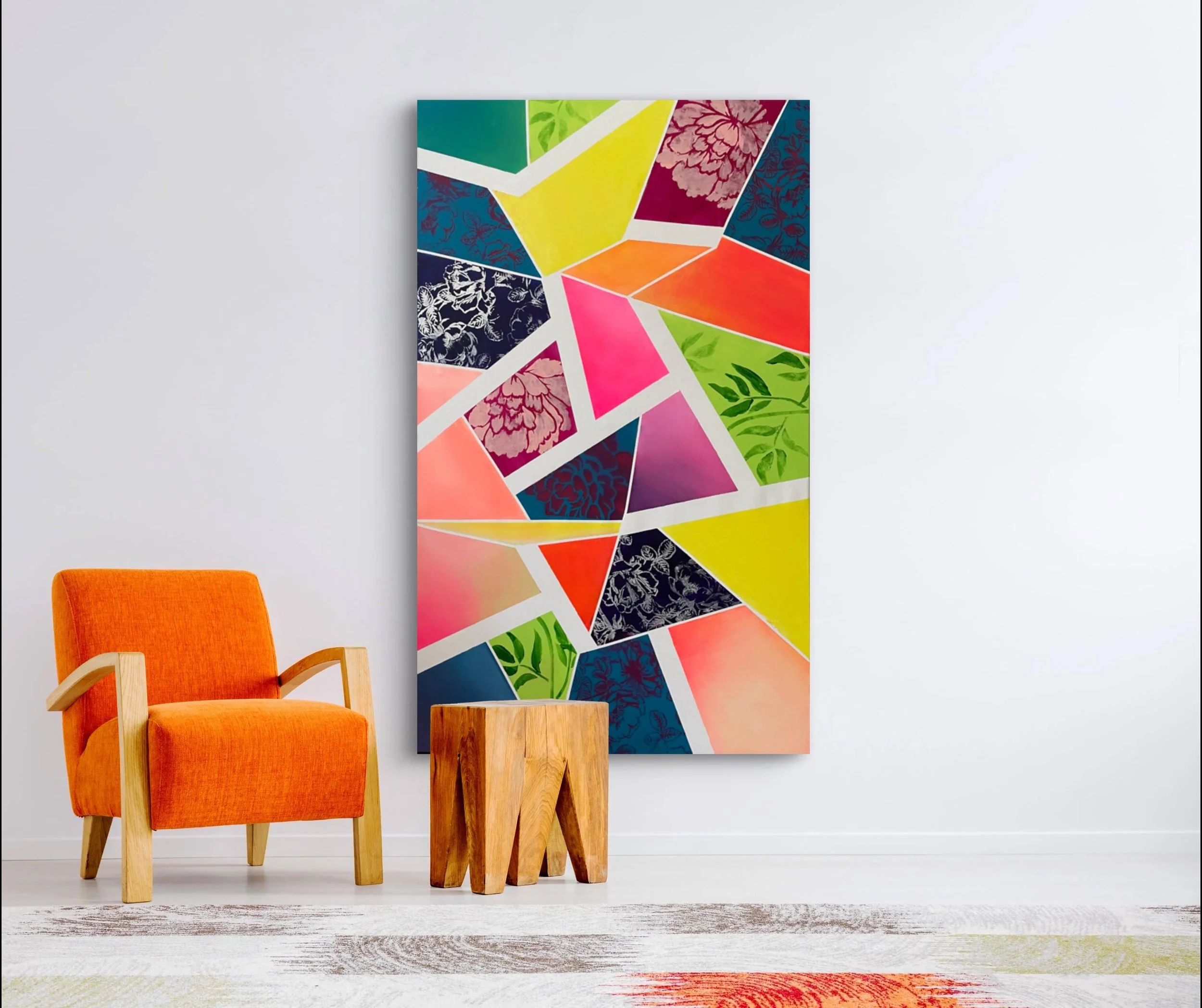 This is a large original abstract pop painting by Marcy Chapman. This painting can hang horizontally or vertically. Shipped unstretched canvas. This painting is very large So shipping will be rolled canvas painting only no frame included. Canvas will need to be stretched when arrived.