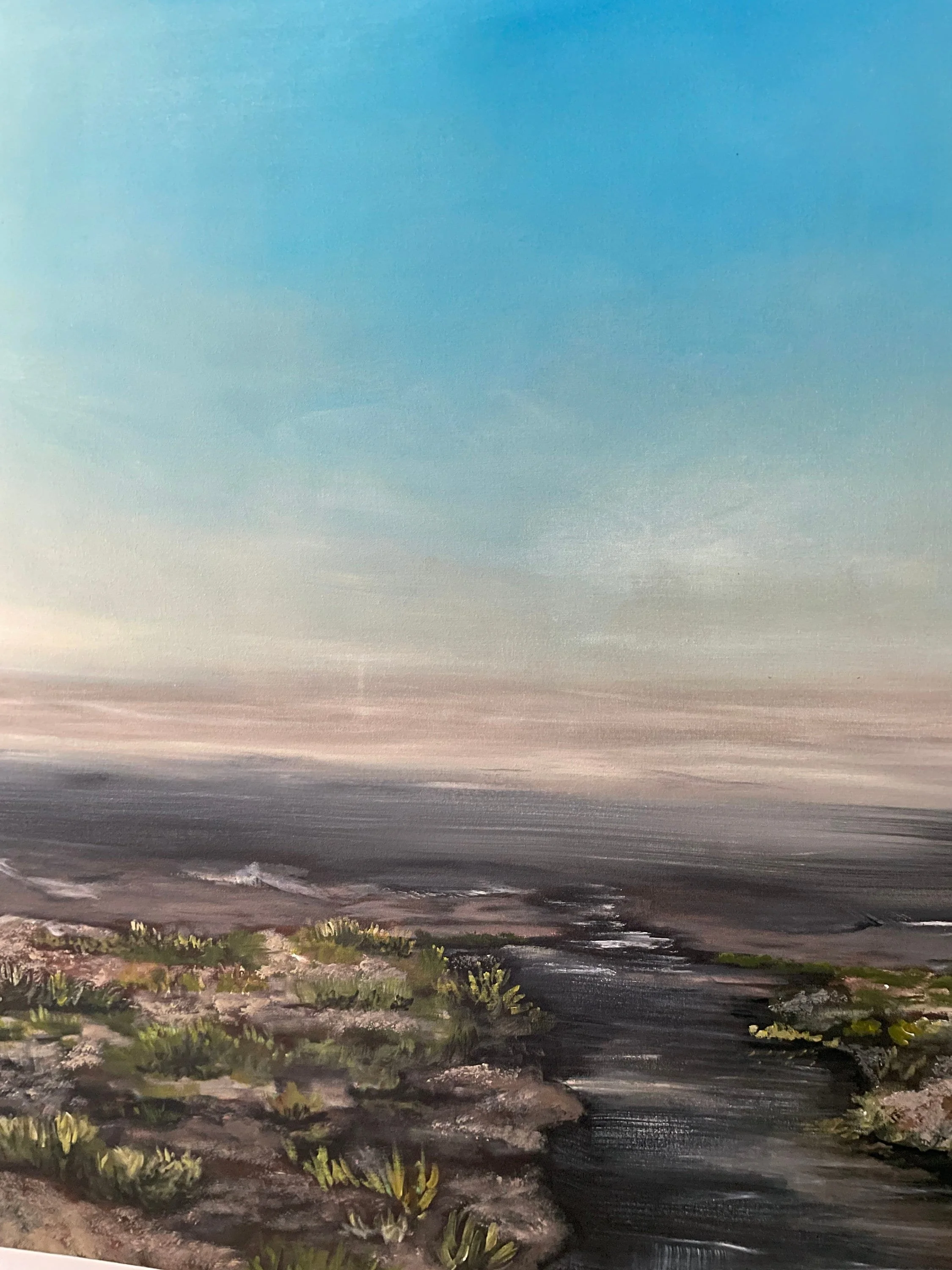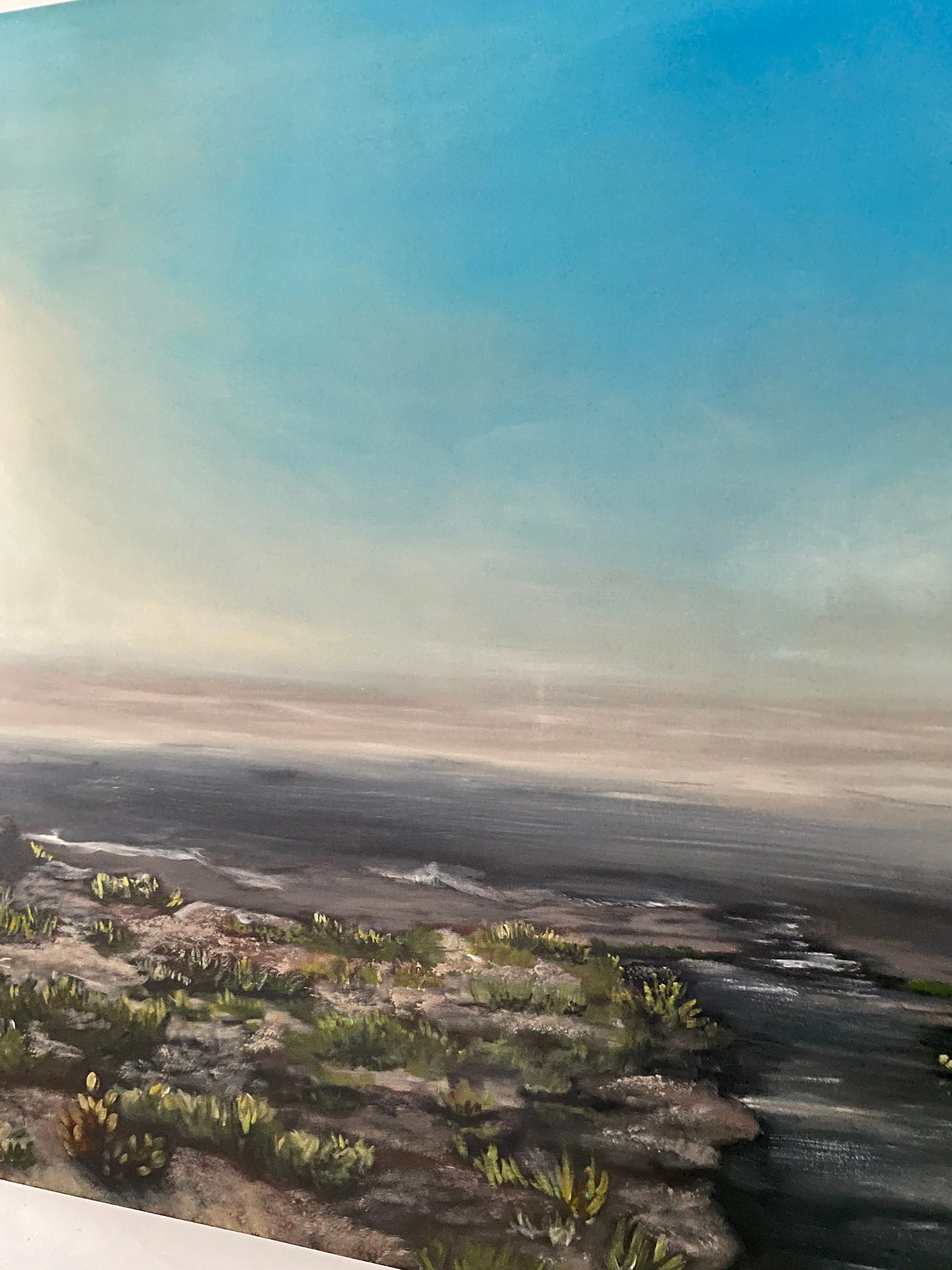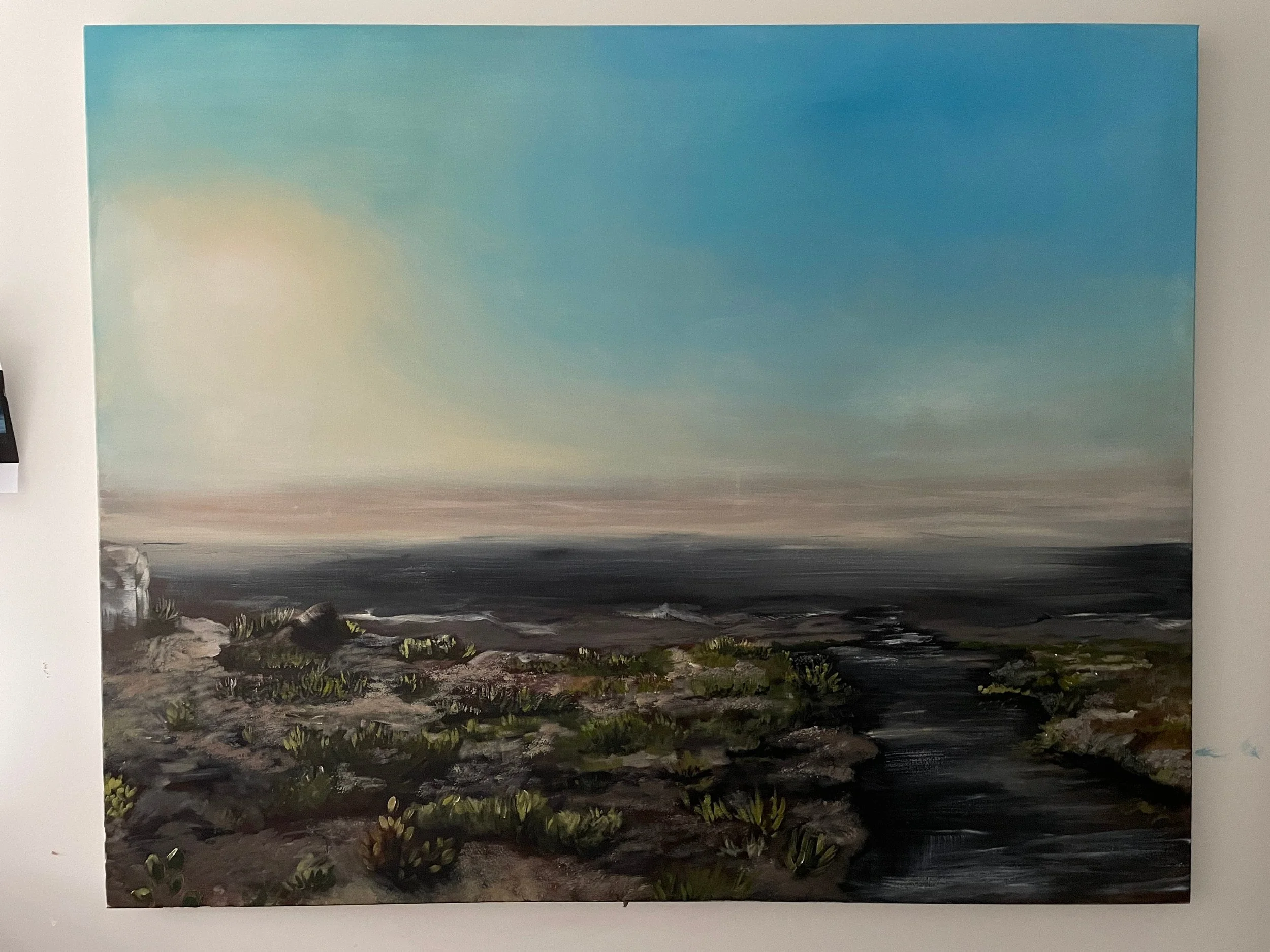 5 ft x 4 ft large contemporary landscape painting by Marcy Chapman.