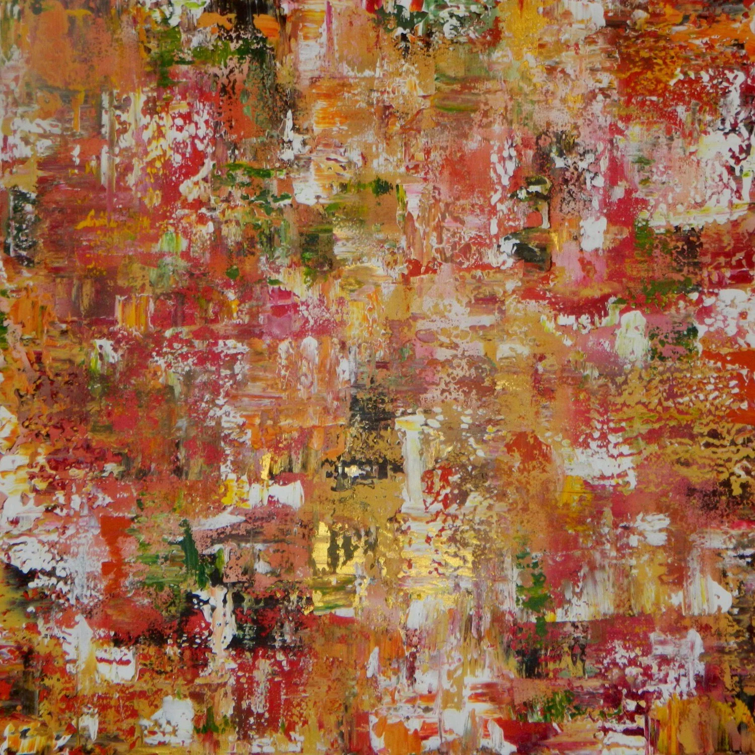 large original abstract orange yellow green gold Large Original Abstract painting Marcy Chapman. gold red orange pink yellow red