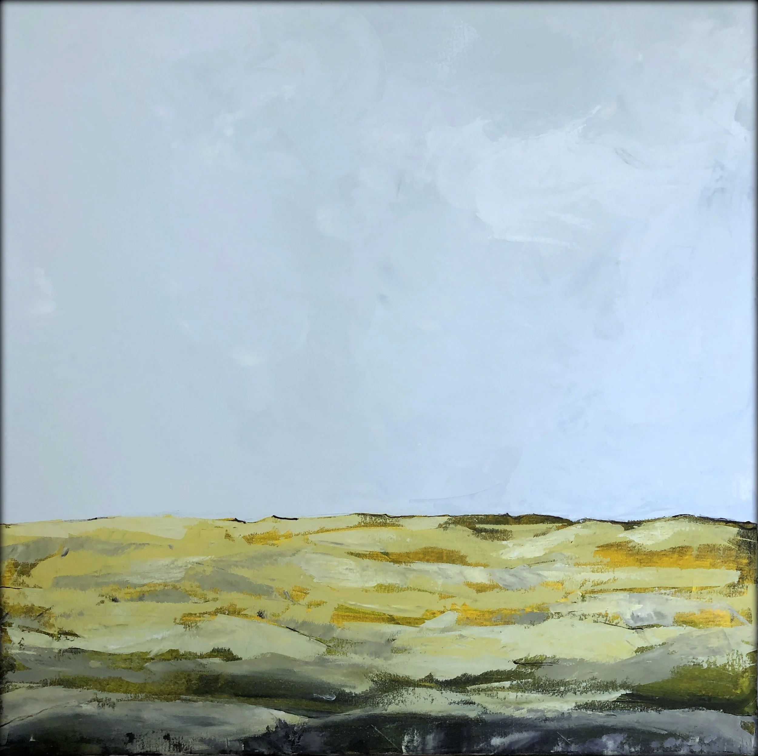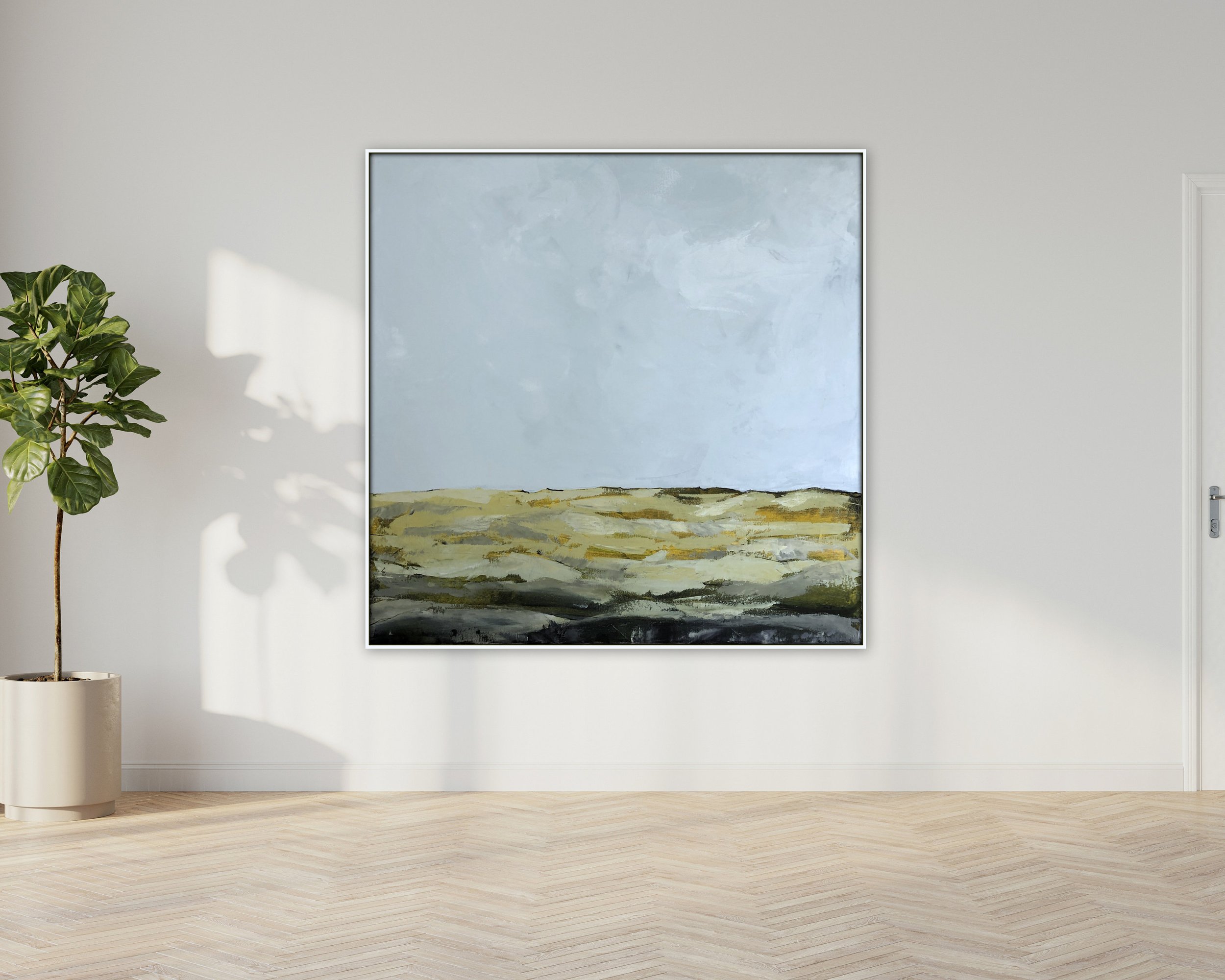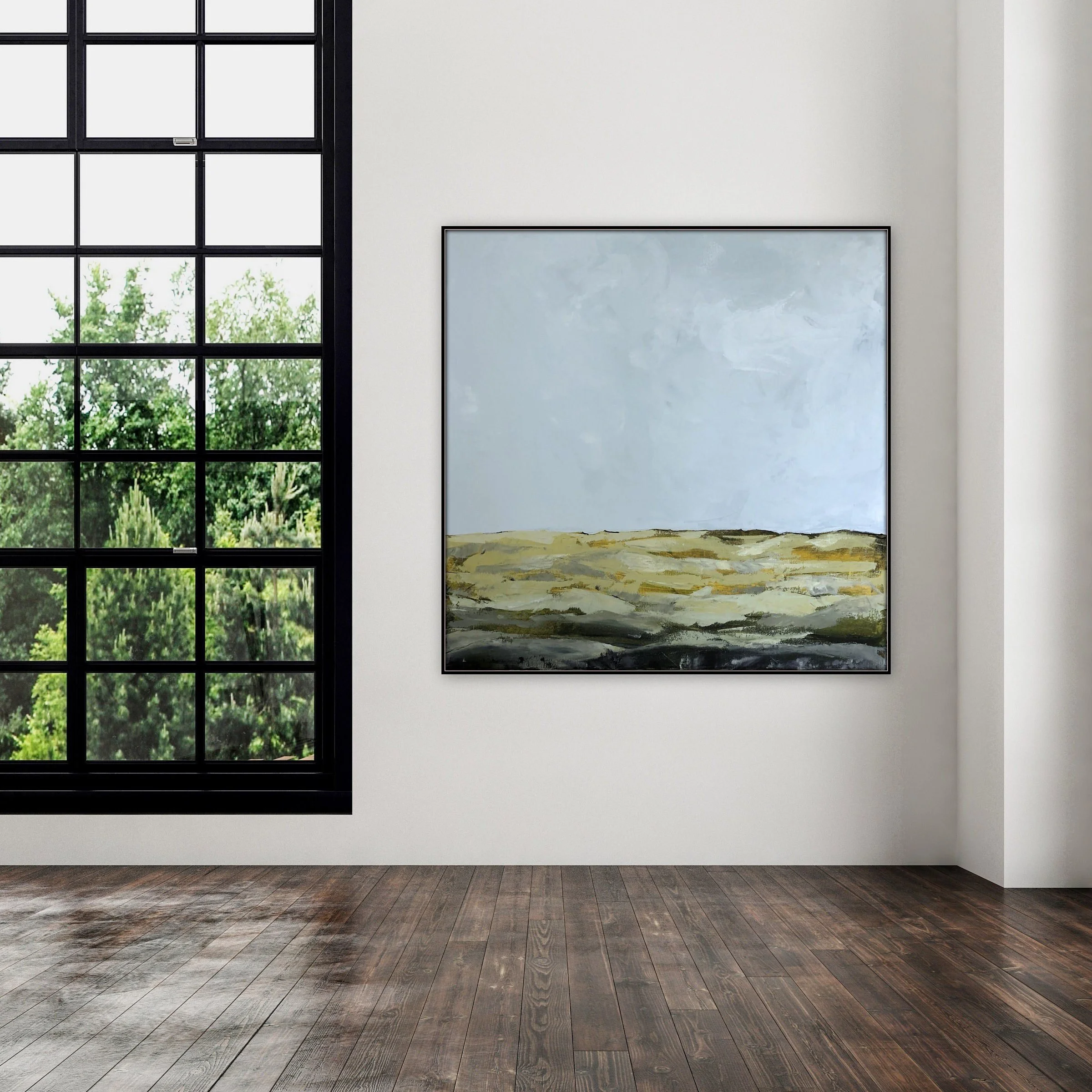 Large scale, abstract landscape, wall art on canvas, shipped on frame, 48 x 48 large painting by MArcy Chapman, green and blue minimal