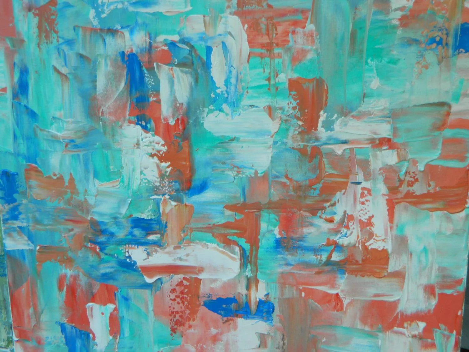 Original Artwork › Large turquoise coral pink/ orange/ peach abstract painting by Marcy Chapman 48 x 36 Original artwork wall decorUnstretched canvas painting Image 1 of 4 Image 2 of 4 Image 3 of 4 Image 4 of 4 Large turquoise coral pink/ orange/ peach abstract painting by Marcy Chapman 48 x 36 Original artwork wall decorUnstretched canvas painting $100.00 This is a large Original abstract modern / contemporary painting by Marcy Chapman This paintings colors are so light and fresh. This painting measures 48" x 36" and is shipped unstretched canvas only. Check out more of my paintings at mecart.etsy.com Get notified by email when this product is in stock. Add To Cart Added! This is a large Original abstract modern / contemporary painting by Marcy Chapman This paintings colors are so light and fresh. This painting measures 48" x 36" and is shipped unstretched canvas only. Check out more of my paintings at mecart.etsy.com