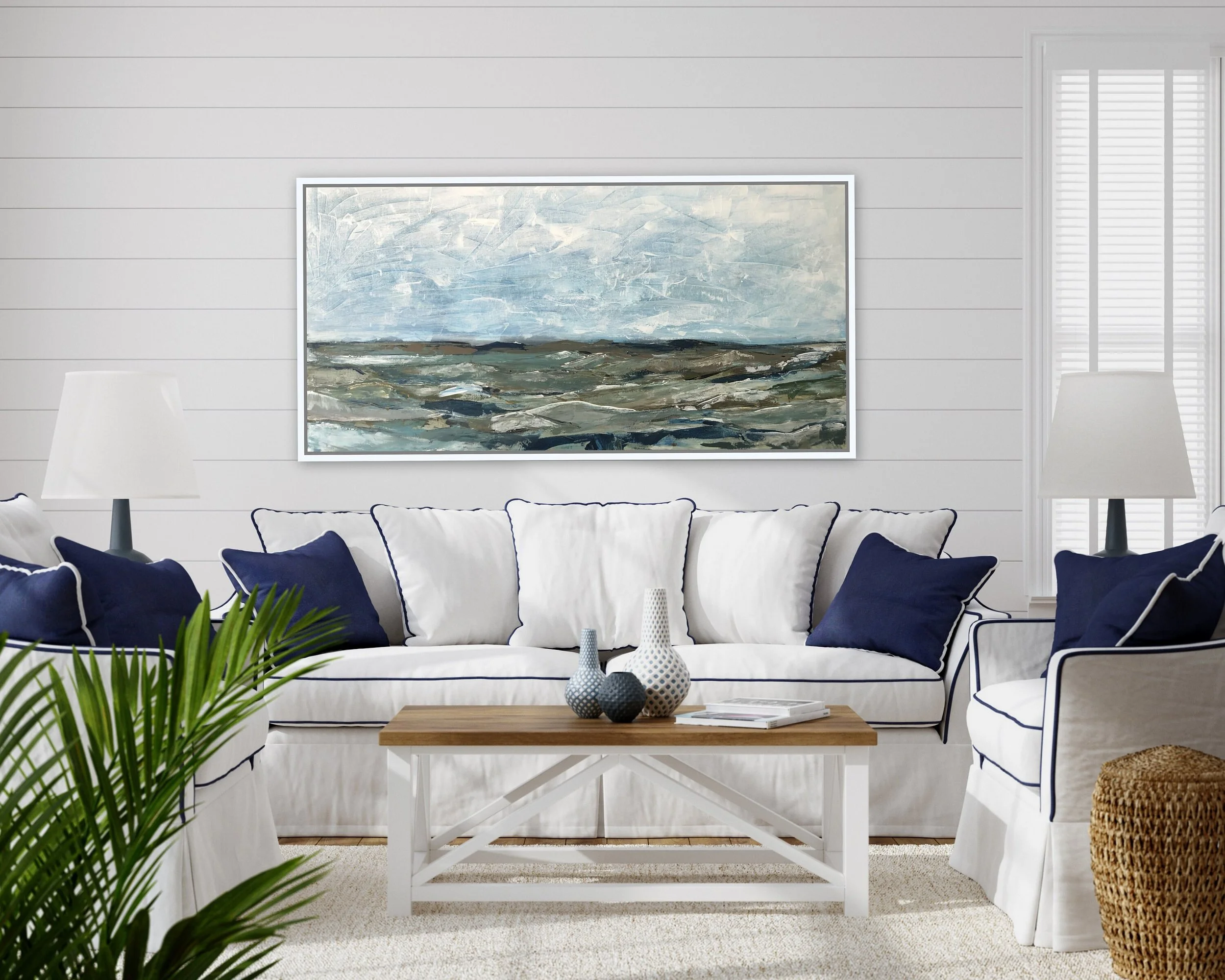 Marcy Chapman's Original, seacoast, nautical, mountain, blue abstract painting, acrylic original ready to hang stretched canvas wall art
