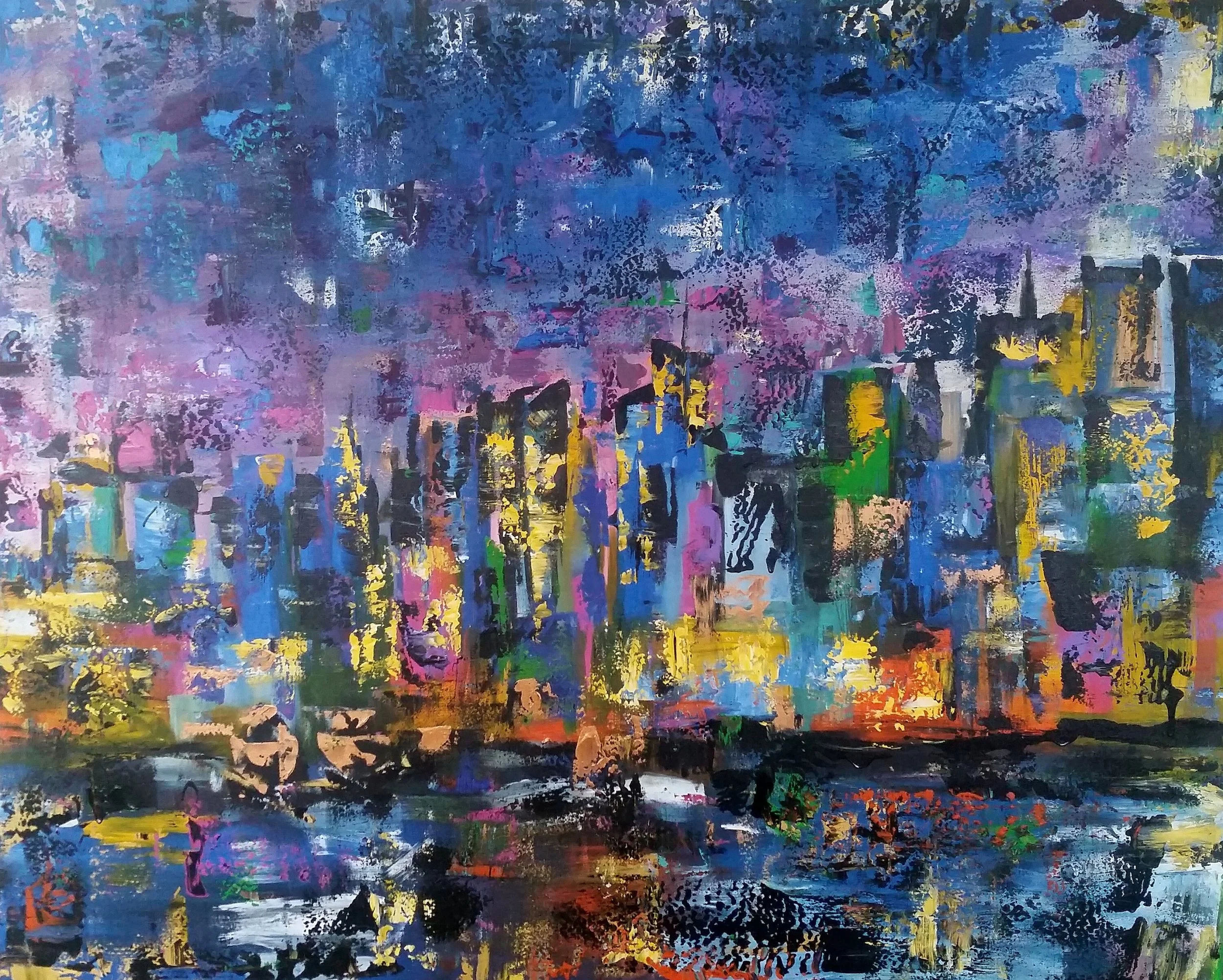 New York City abstract painting original painting on canvas marcy chapman Modern abstract New York skyline cityscape
