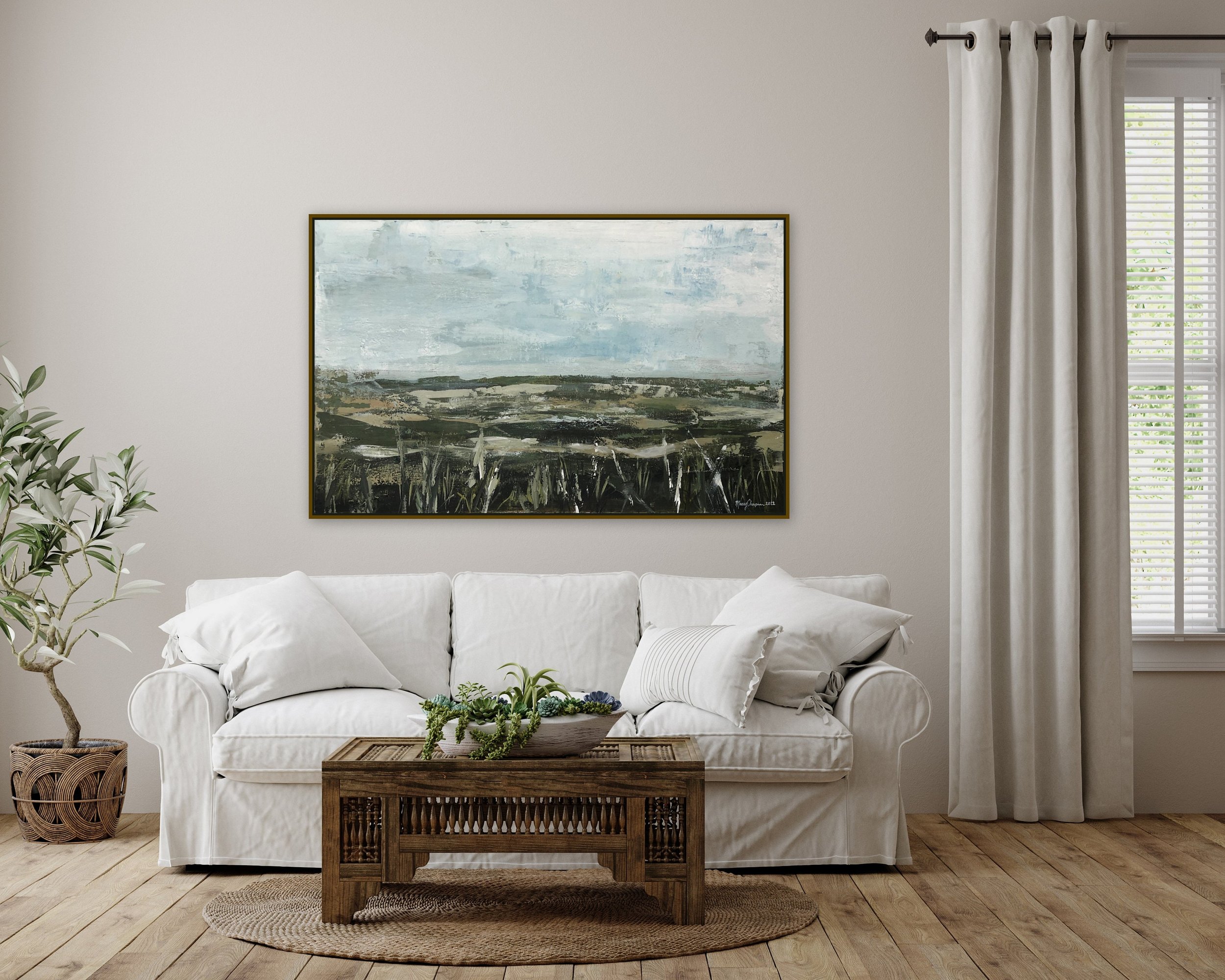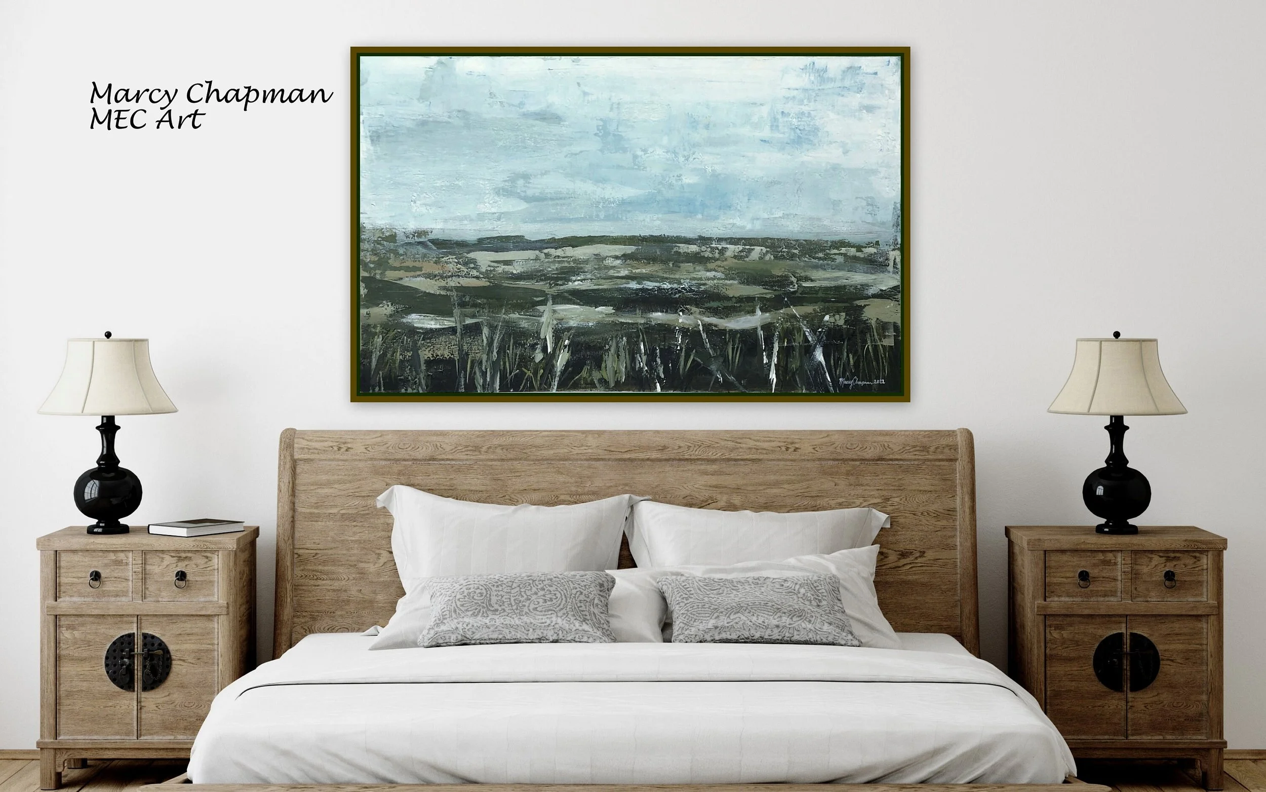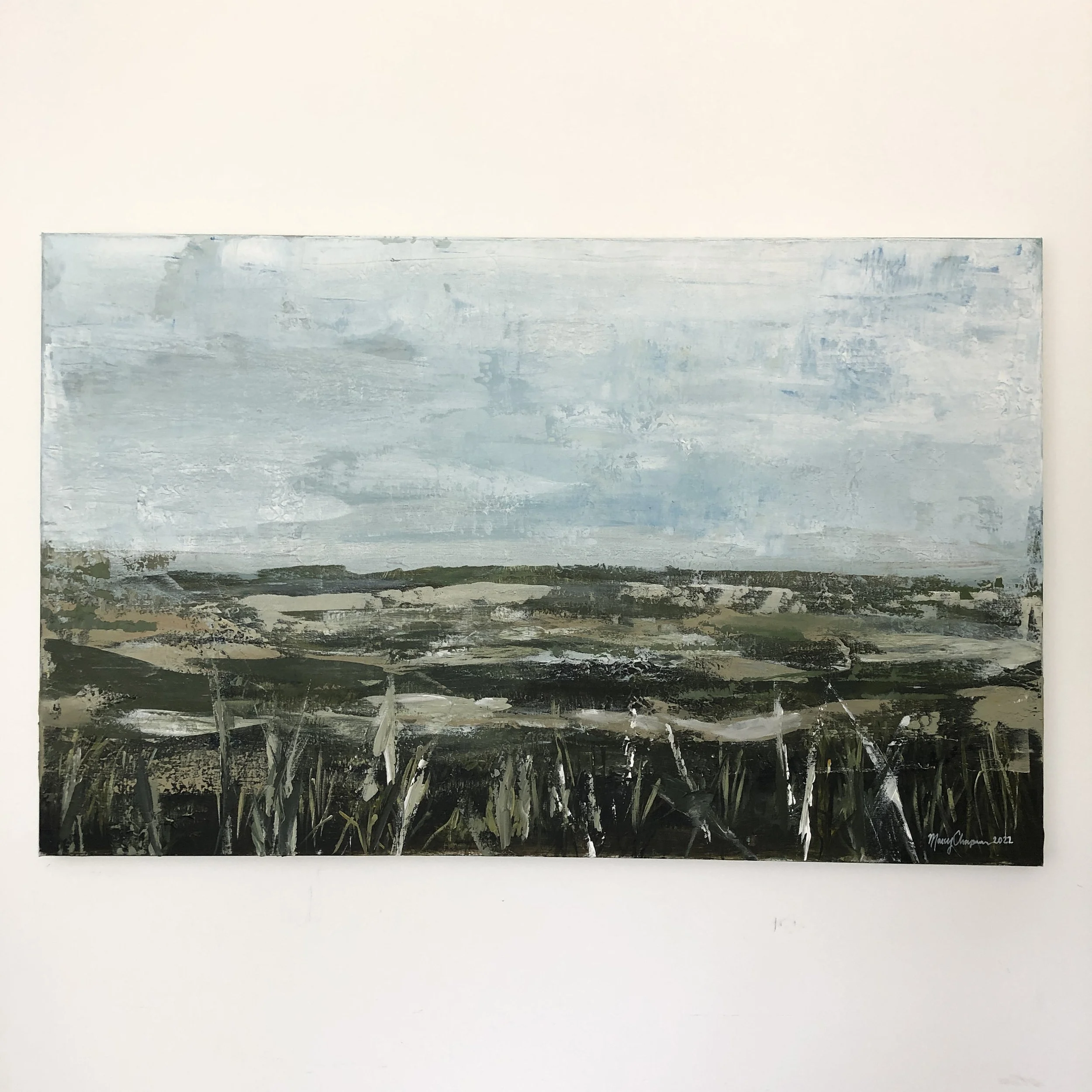 Original 30" x 48" Abstract grass landscape by Marcy Chapman Large acrylic painting