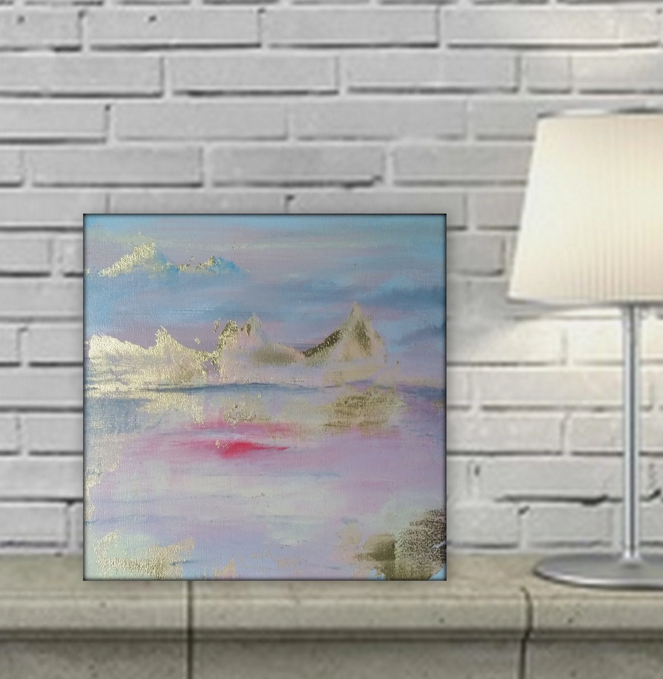 Original Artwork › Pretty gold leaf landscape painting by Marcy Chapman pink purple blue painting abstract art for wall at home Image 1 of 1 Pretty gold leaf landscape painting by Marcy Chapman pink purple blue painting abstract art for wall at home $65.00 sold out One of my few smaller abstract paintings.This painting is so pretty in person. The gold leaf shimmers from the side and the painting wraps arounf the deep 1.5" gallery wrapped wood frame.This is a varnished acrylic artwork on canvas.This painting is ready to hang and will look beautiful in your home. I guarantee if you like the painting in the photos you will love it in person.Please contact me for a custom order if the size or colors arent what you were looking for!Thank you for stopping by my shop!Have a wonderful day! Get notified by email when this product is in stock. Sold Out Added! One of my few smaller abstract paintings.This painting is so pretty in person. The gold leaf shimmers from the side and the painting wraps arounf the deep 1.5" gallery wrapped wood frame.This is a varnished acrylic artwork on canvas.This painting is ready to hang and will look beautiful in your home. I guarantee if you like the painting in the photos you will love it in person.Please contact me for a custom order if the size or colors arent what you were looking for!Thank you for stopping by my shop!Have a wonderful day!