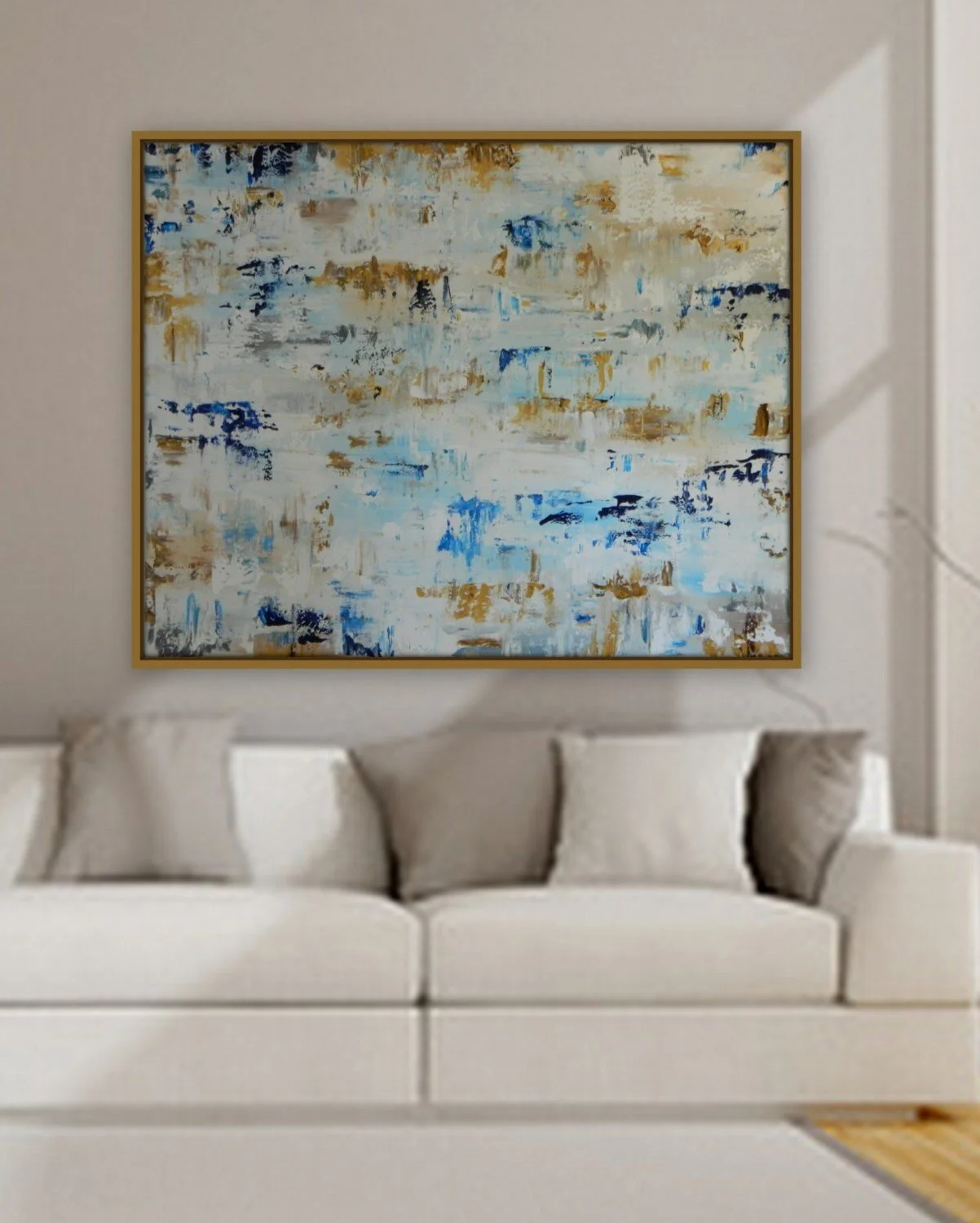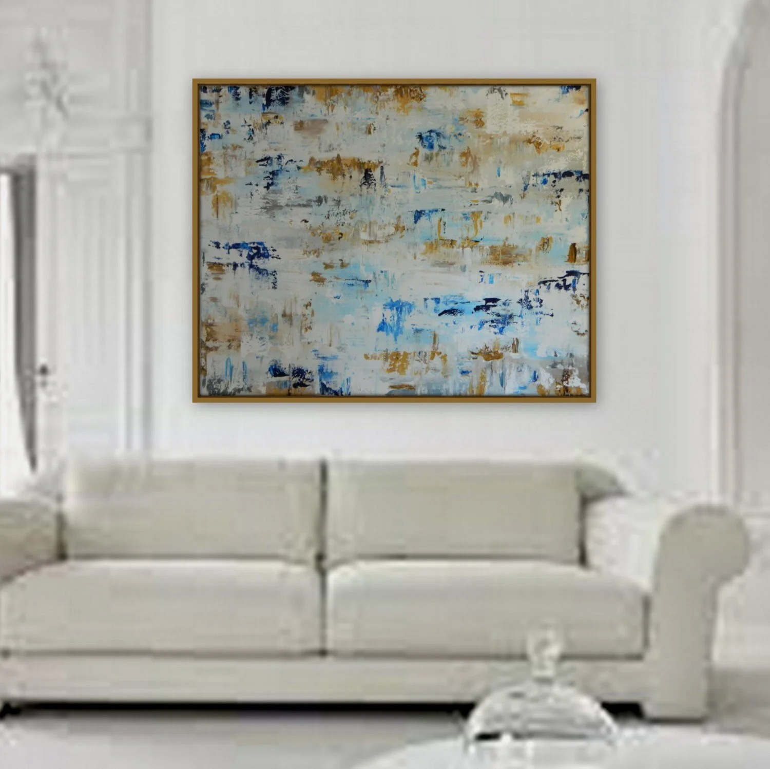 Original Artwork › Private Listing for Amber custom painting 48" x60" unstretched gold silver blue white Image 1 of 5 Image 2 of 5 Image 3 of 5 Image 4 of 5 Image 5 of 5 Private Listing for Amber custom painting 48" x60" unstretched gold silver blue white $400.00 sold out Large original modern abstract painting 60" x 48" edges painted white.Shipped UNstretched canvas only.Gold frame not included. Get notified by email when this product is in stock. Sold Out Added! Large original modern abstract painting 60" x 48" edges painted white.Shipped UNstretched canvas only.Gold frame not included.