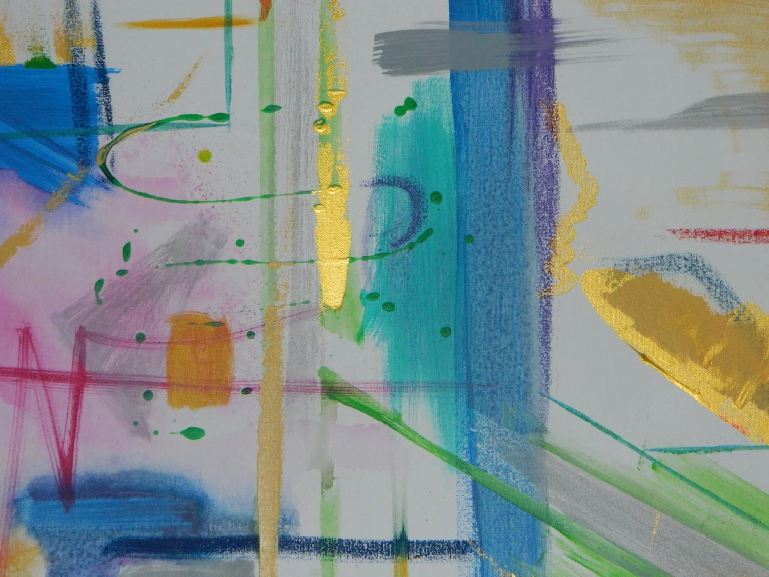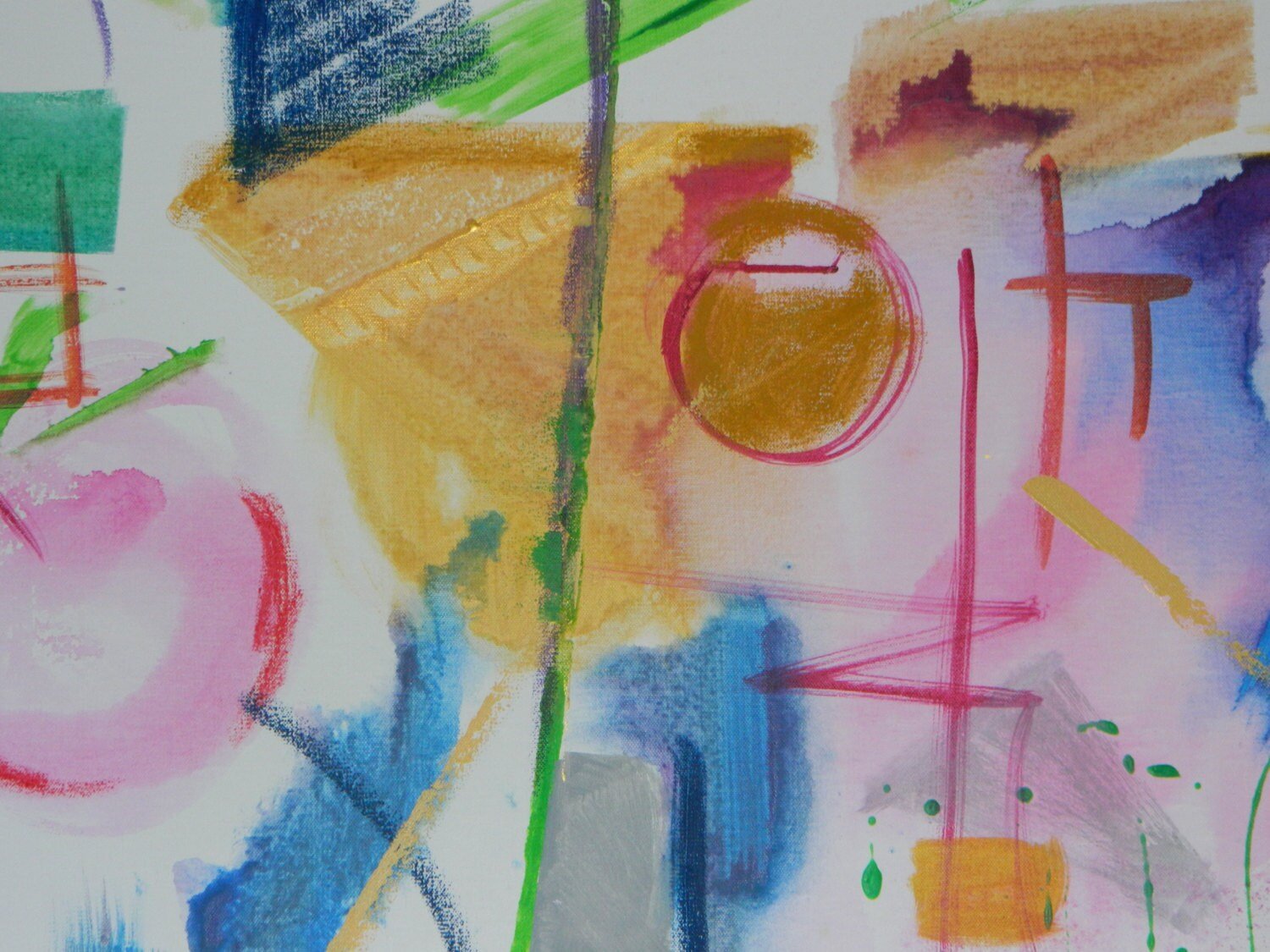Ready to hang 36 x 36 Blue pink gold yellow abstract cubism modern painting acrylic artwork large wall art by Marcy Chapman original