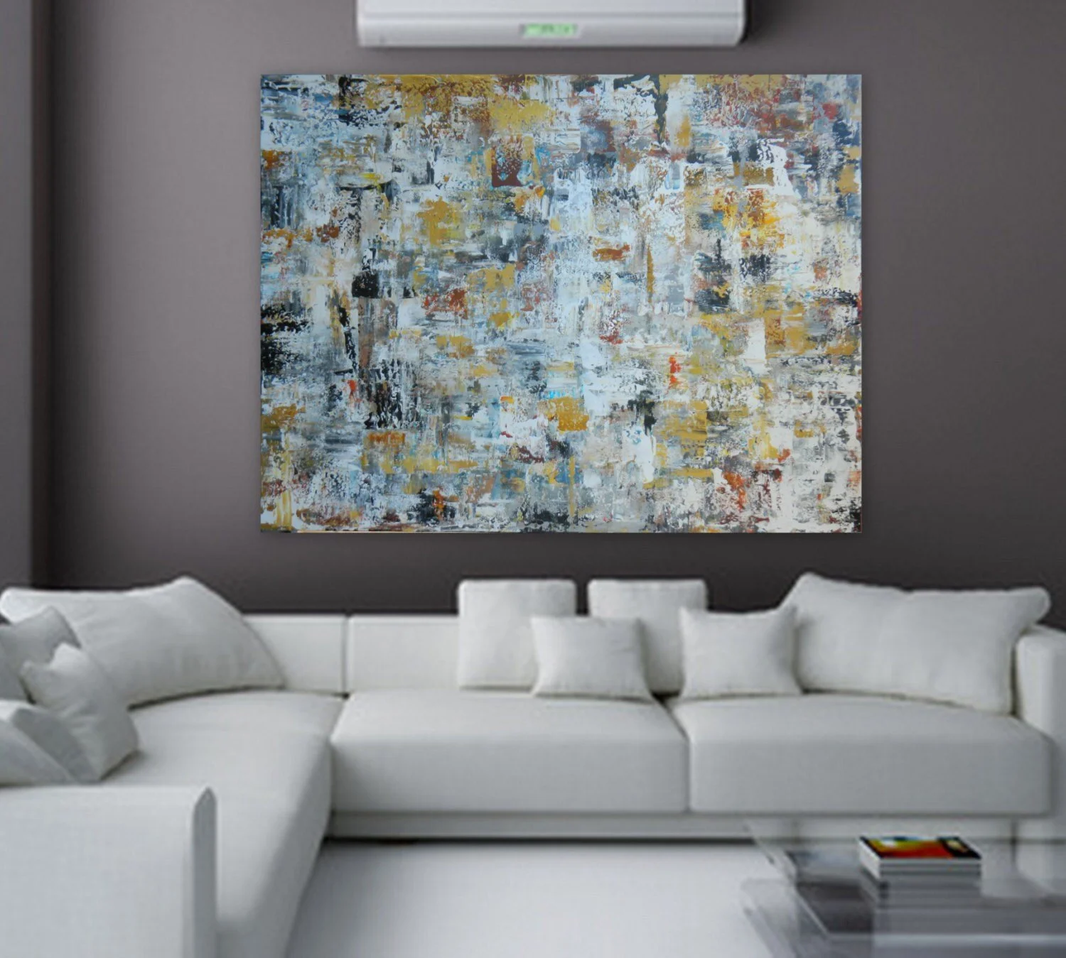RESERVED Huge XL 72" x 55" Enormous, XXL, Orignal Large Abstract Painting/ Canvas Only Black yellow blue gold silver +