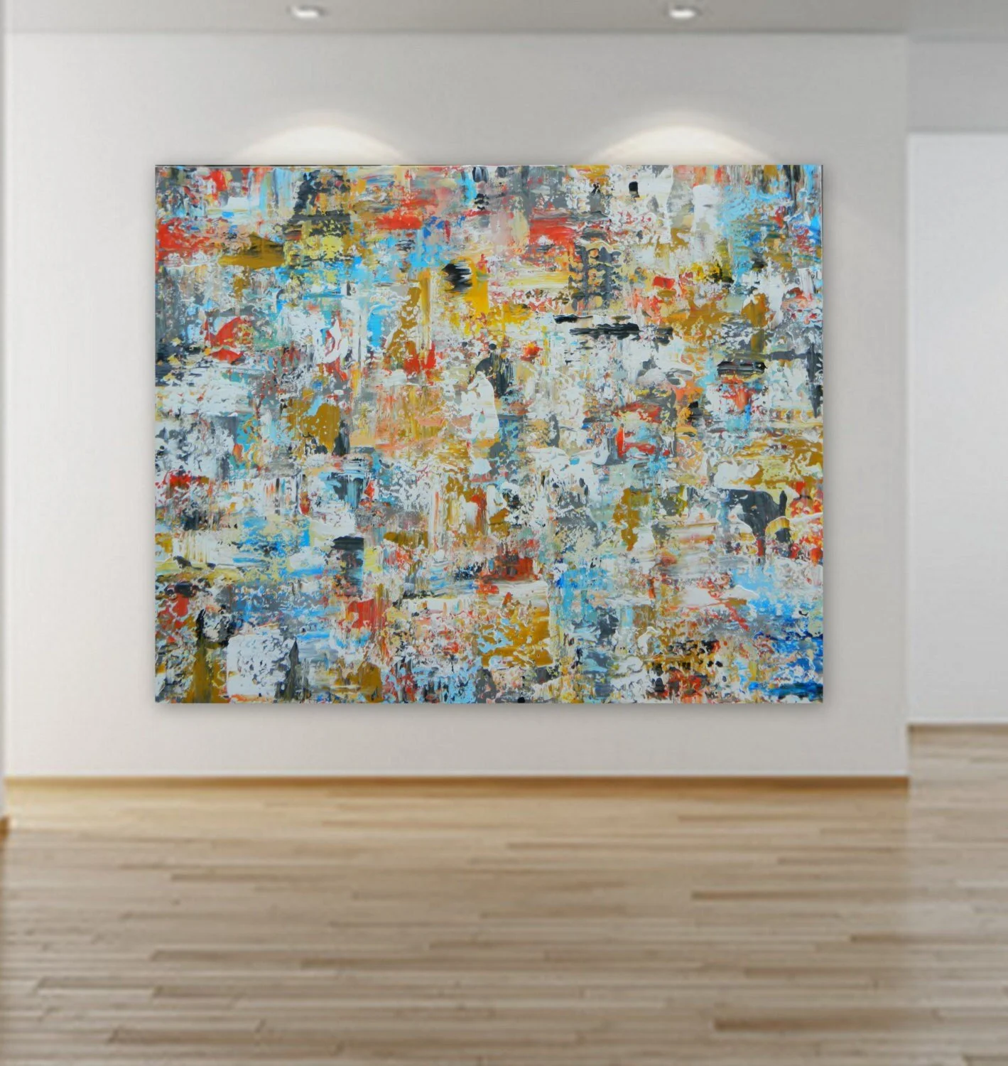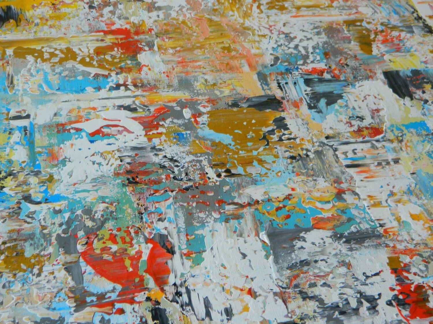 Original Artwork › Reserved listing 50" x 40" original abstract contemporary modern painting on canvas wall art decor orange white yellow blue gray white Image 1 of 4 Image 2 of 4 Image 3 of 4 Image 4 of 4 Reserved listing 50" x 40" original abstract contemporary modern painting on canvas wall art decor orange white yellow blue gray white $600.00 sold out 50" x 40" Abstract paintingColors include: white yellow, light blue, orange and gray Free shipping. Unstretched canvas painting Get notified by email when this product is in stock. Sold Out Added! 50" x 40" Abstract paintingColors include: white yellow, light blue, orange and gray Free shipping. Unstretched canvas painting